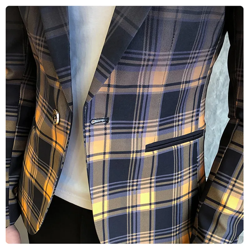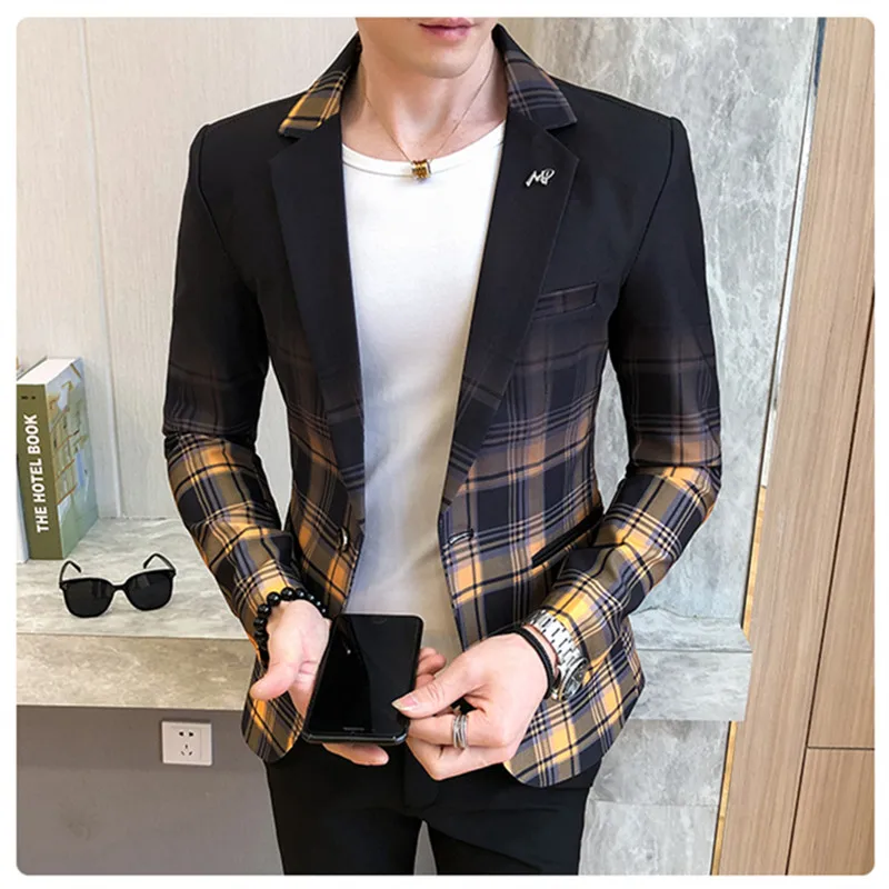 Мужская куртка Премиум цвета, приталенная, деловая, свадебная, клетчатая, блейзеры/мужской модный костюм для отдыха, пальто, клетчатые куртки, S-3XL