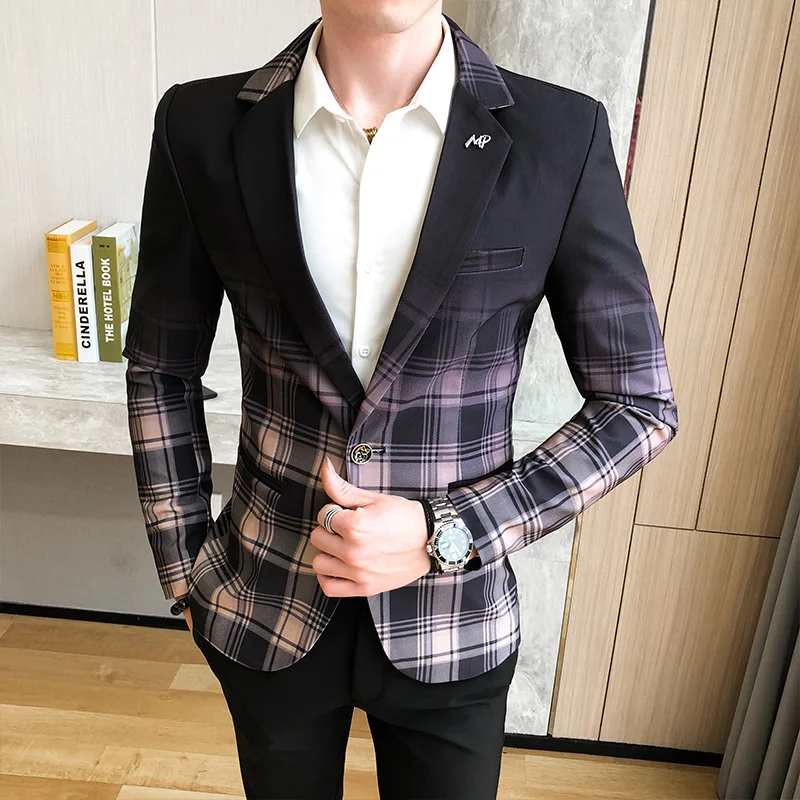 Мужской деловой пиджак премиум-класса, приталенный, Свадебный, клетчатый пиджакМужская мода, повседневный костюм, пальто, клетчатые пиджаки