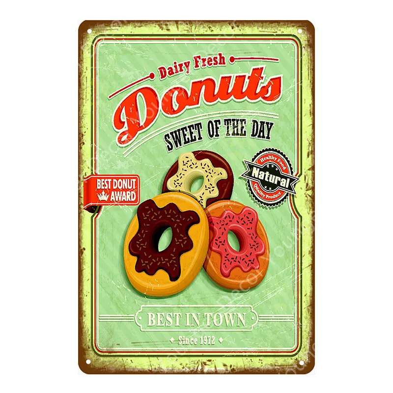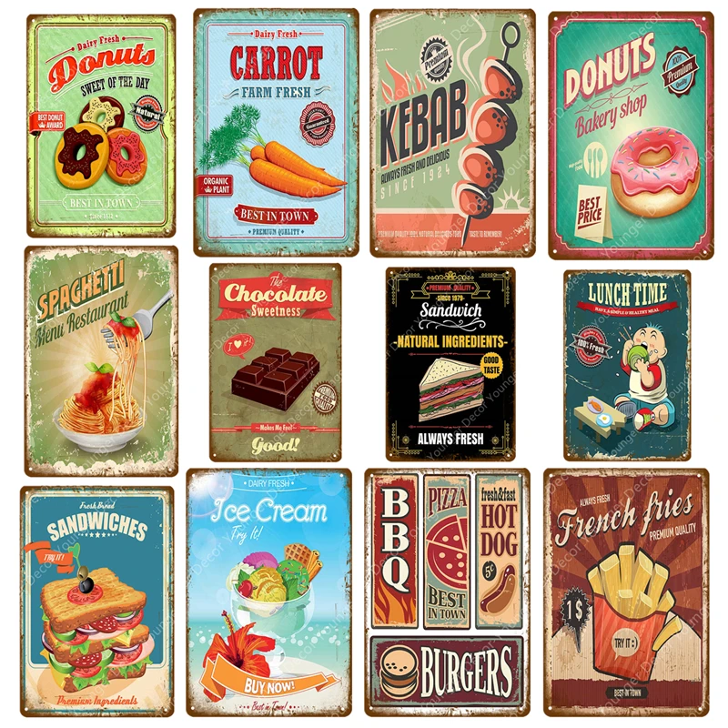 Пончики, сэндвичи, мороженое, винтажный металлический знак, кухня, кафе, хлебобулочный магазин, декоративная тарелка, Настенная табличка, картина, декор, искусство, YJ079