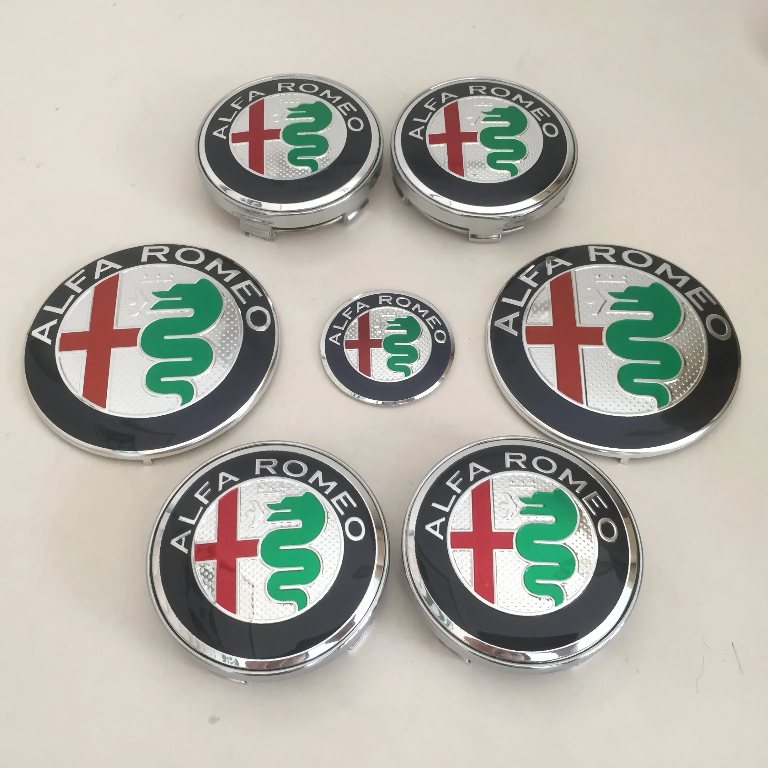 Новая зеленая Автомобильная эмблема ALFA ROMEO 7 шт.компл., колпачки для передней крышки багажника, наклейка на заднюю крышку багажника 2x74 мм, 4x60 мм, 1x40 мм