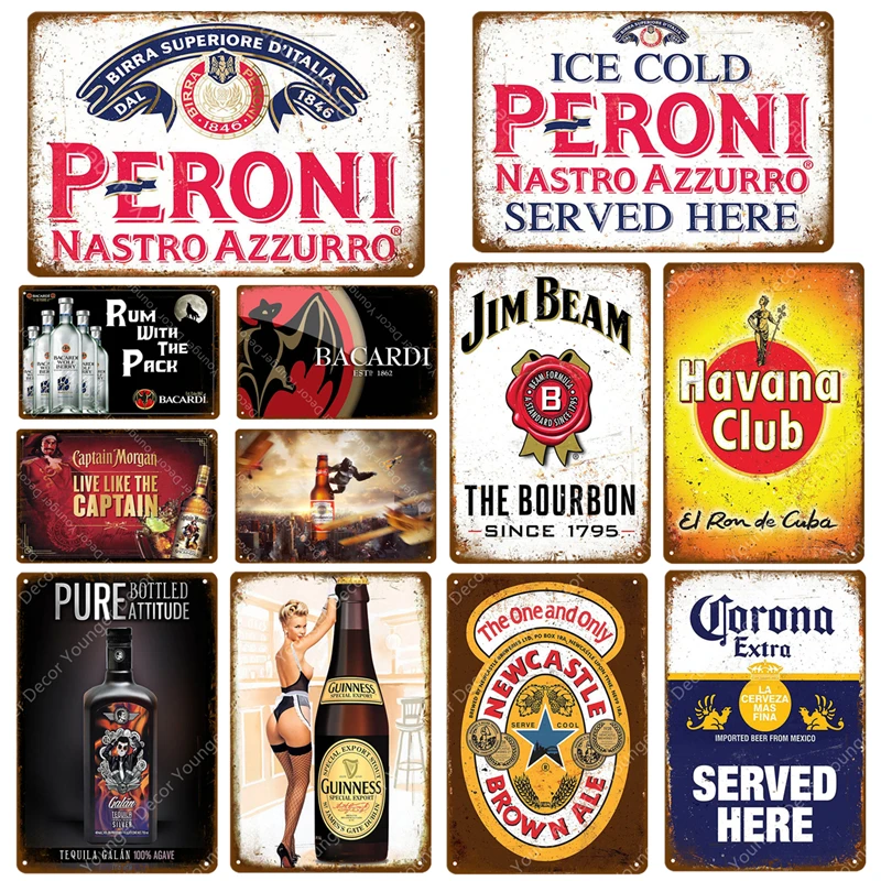 Ром в упаковке, пивной налет Peroni, винтажные металлические жестяные знаки, настенные декоративные тарелки для паба, бара, казино, виски, вина, плакат YJ049