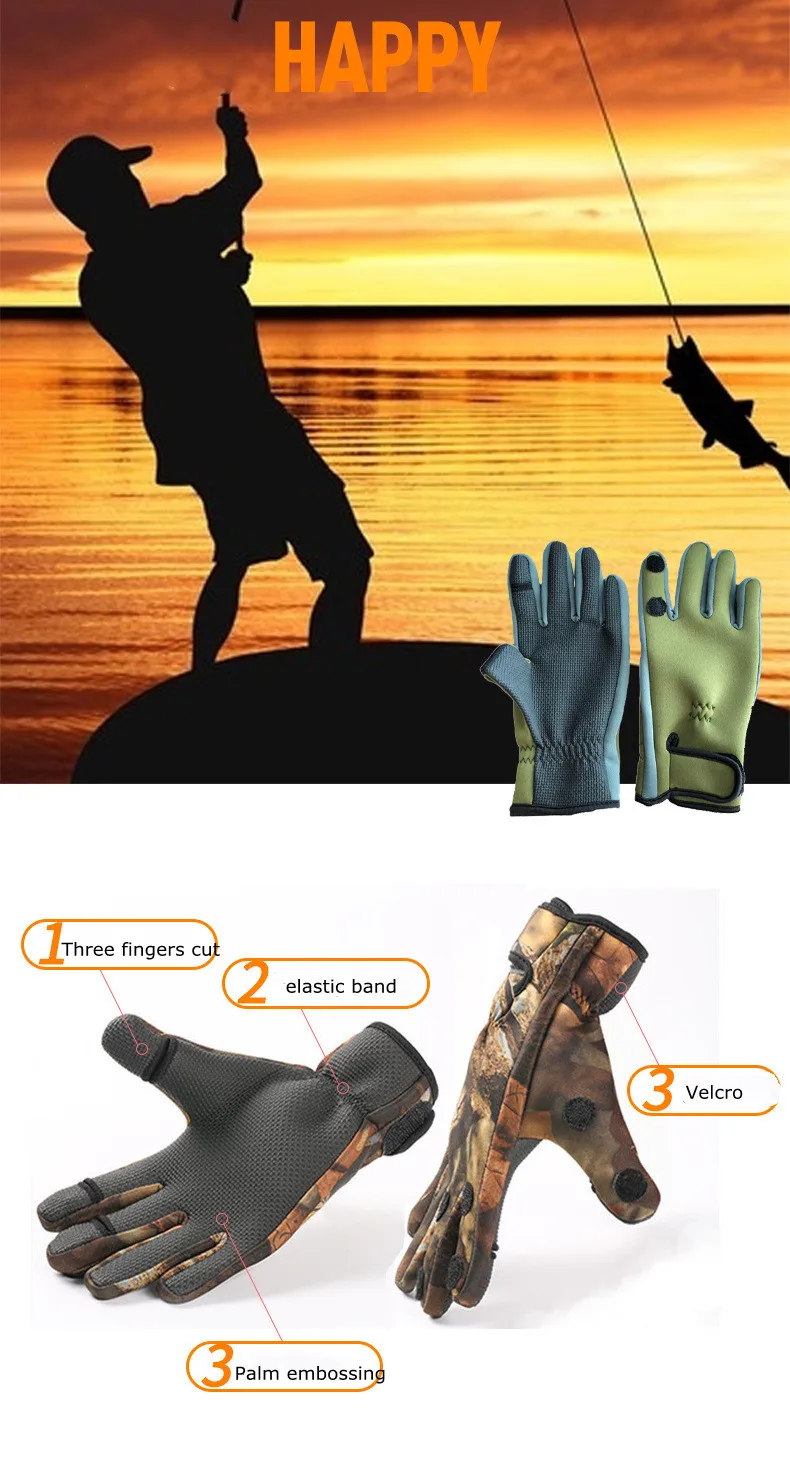 Мужские перчатки для зимней рыбалки, водонепроницаемые Нескользящие перчатки с тремя пальцами для ловли карпа, рыбалки, охоты, аксессуары для рыболовного снаряжения