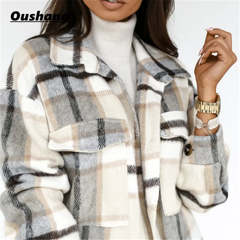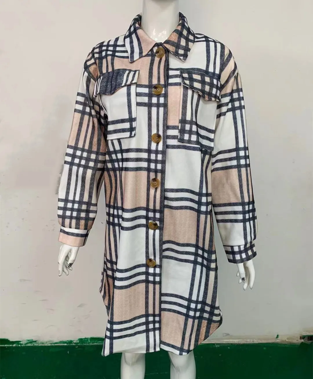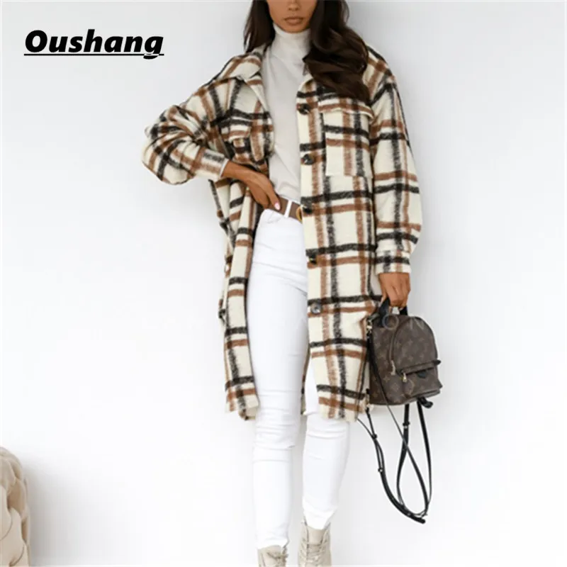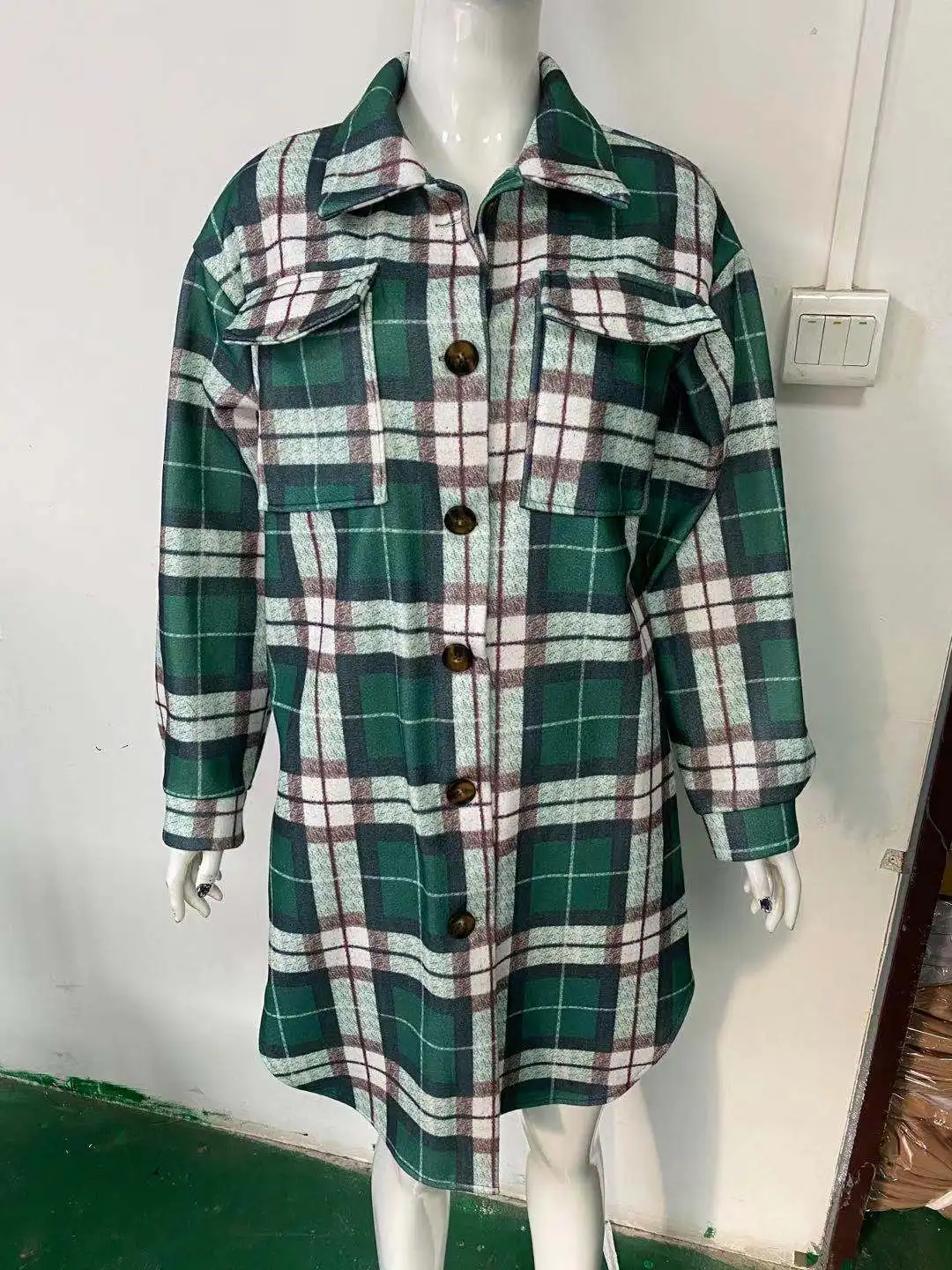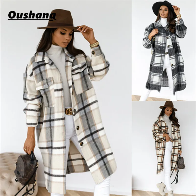 Женский длинный пуховик в клетку, клетчатый уличный Кардиган большого размера в стиле ретро на пуговицах, весна-осень 2022