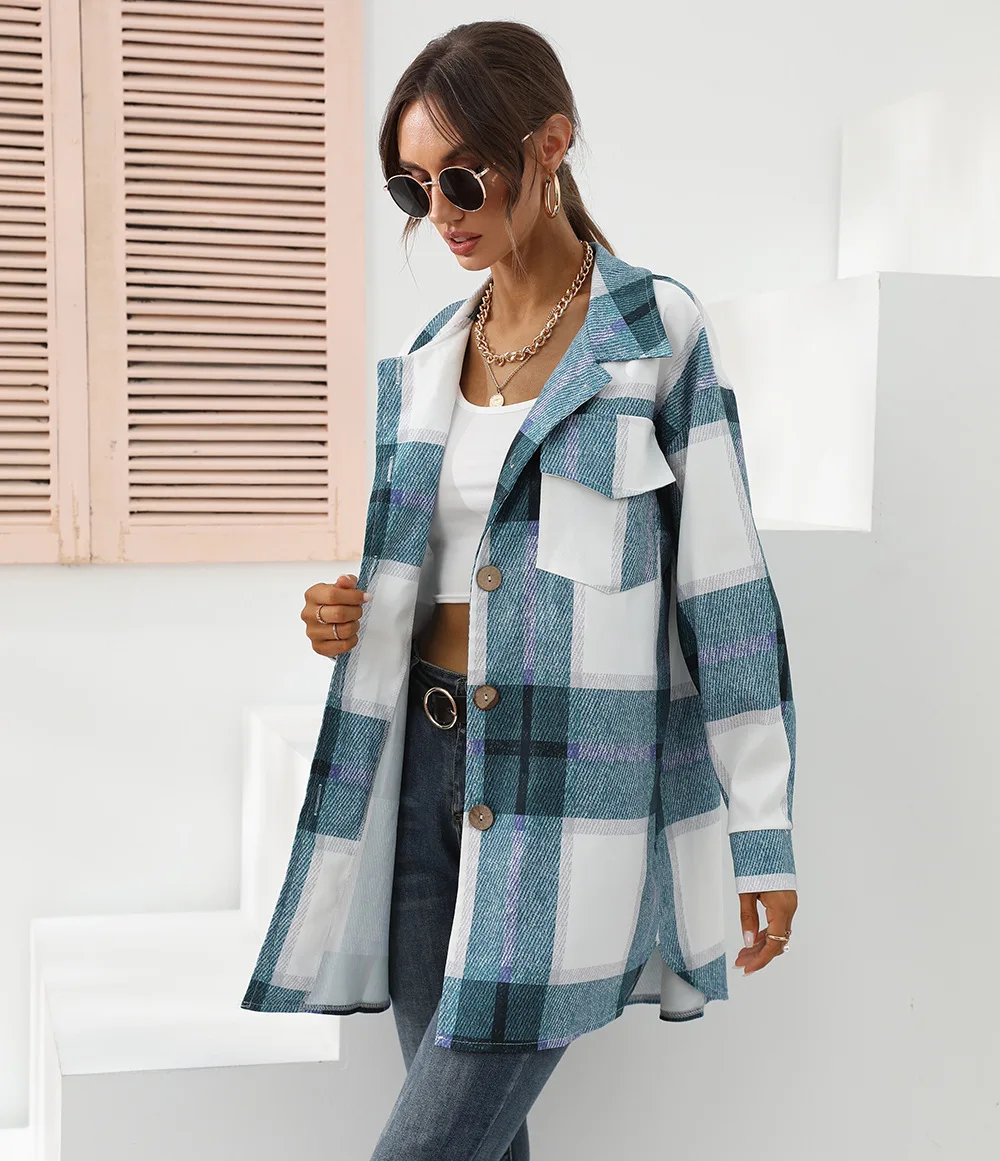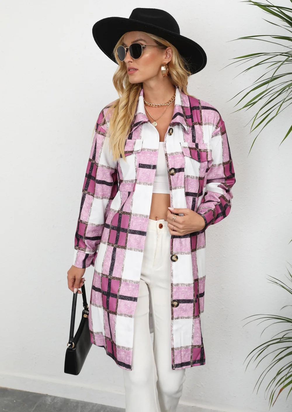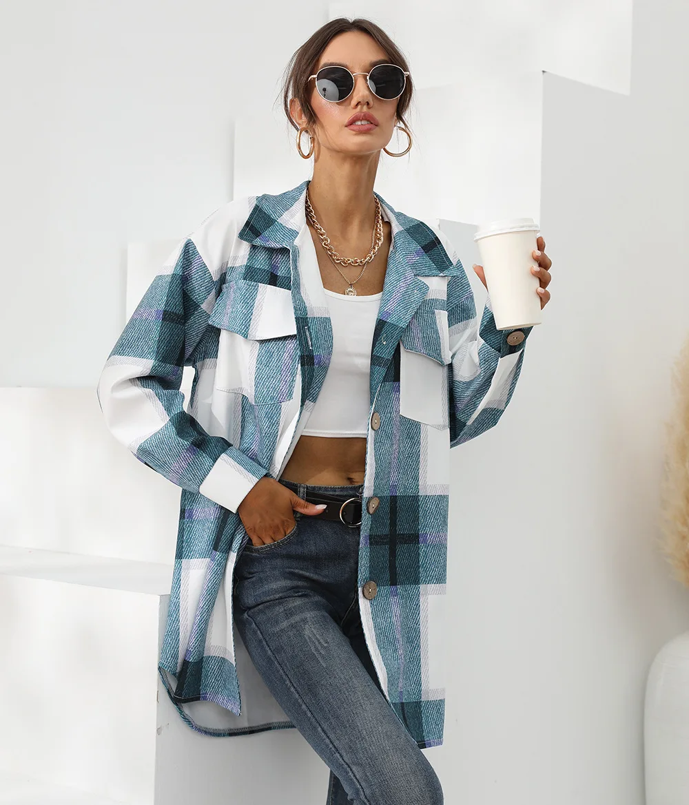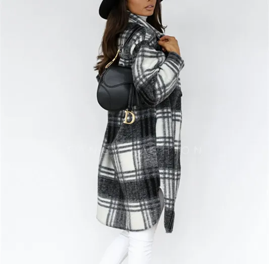 Женский длинный пуховик в клетку, клетчатый уличный Кардиган большого размера в стиле ретро на пуговицах, весна-осень 2022