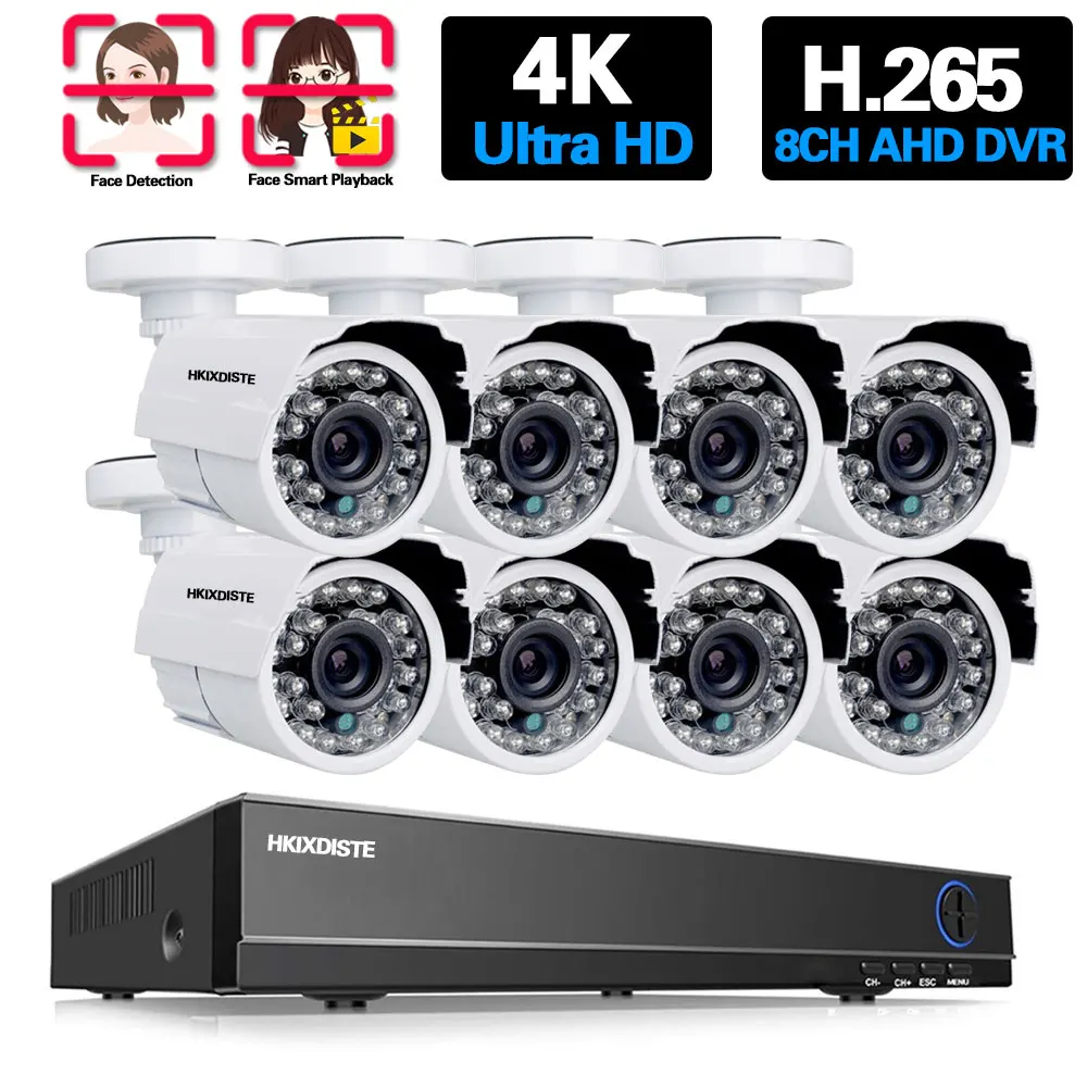 8-канальный цифровой видеорегистратор камера видеонаблюдения системы безопасности 4K 8-канальный AHD DVR Kit распознавание лица аналоговая система видеонаблюдения HD набор XMEYE