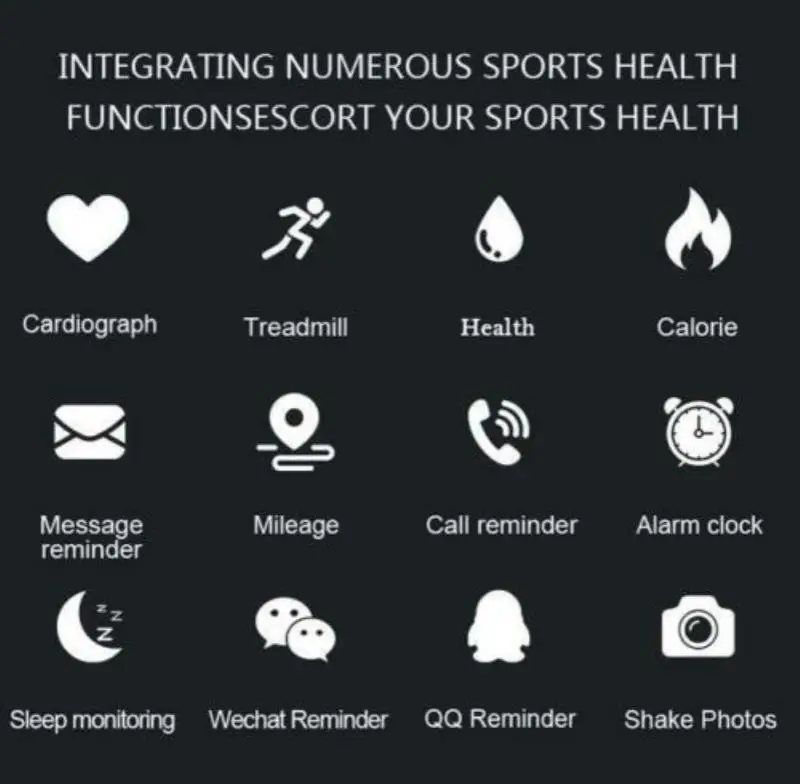 * Дополнительные функции: Поиск браслета, напоминание о тревоге, удаленная камера, поднимите руку, чтобы осветить, управление музыкой, погоду