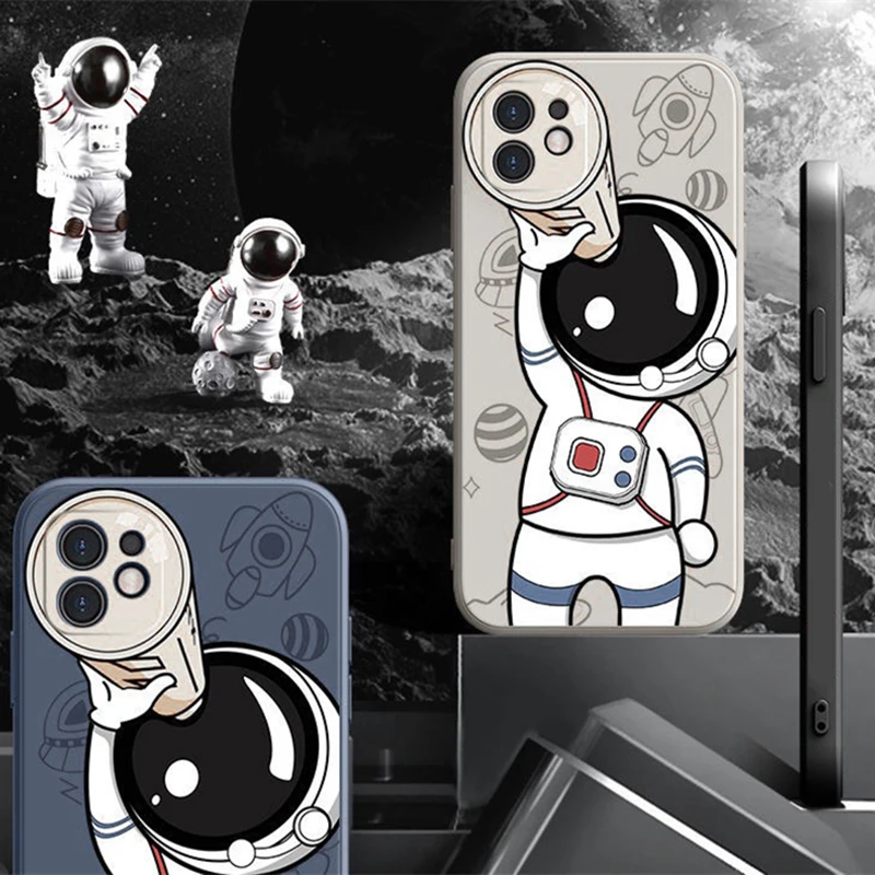 Симпатичный чехол для телефона с астронавтом для iPhone 13 12 11 Pro Max 12 13 Mini X XR XS Max 5 6 7 8 Plus, жидкий силиконовый черный мягкий чехол, чехол
