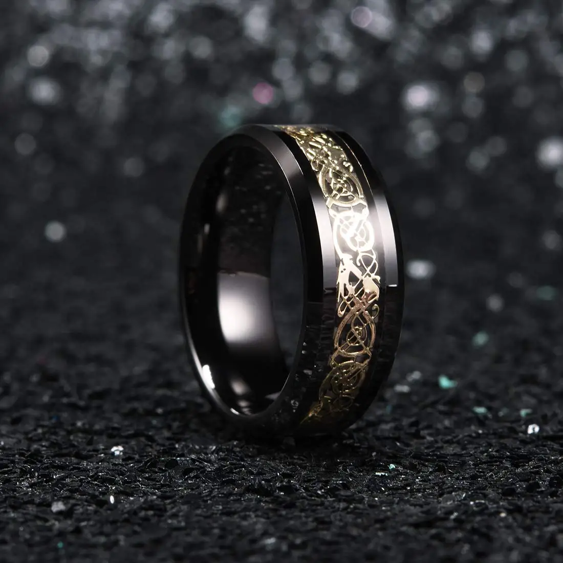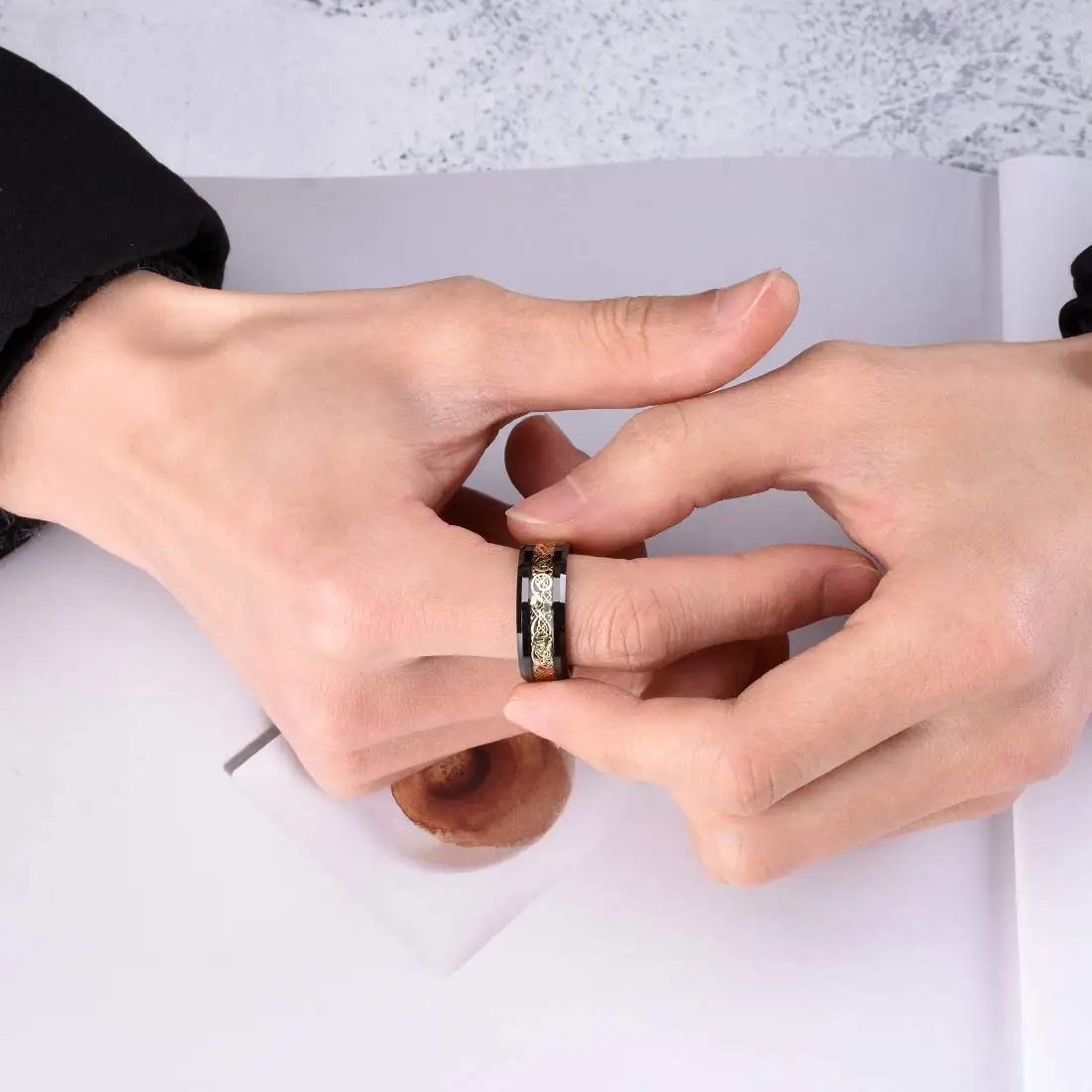 2021 Трендовое 8 мм черное кольцо со скошенным краем, черное вольфрамовое обручальное кольцо для мужчин, Золотое кельтское кольцо с инкрустацией дракона, черное кольцо из углеродного волокна