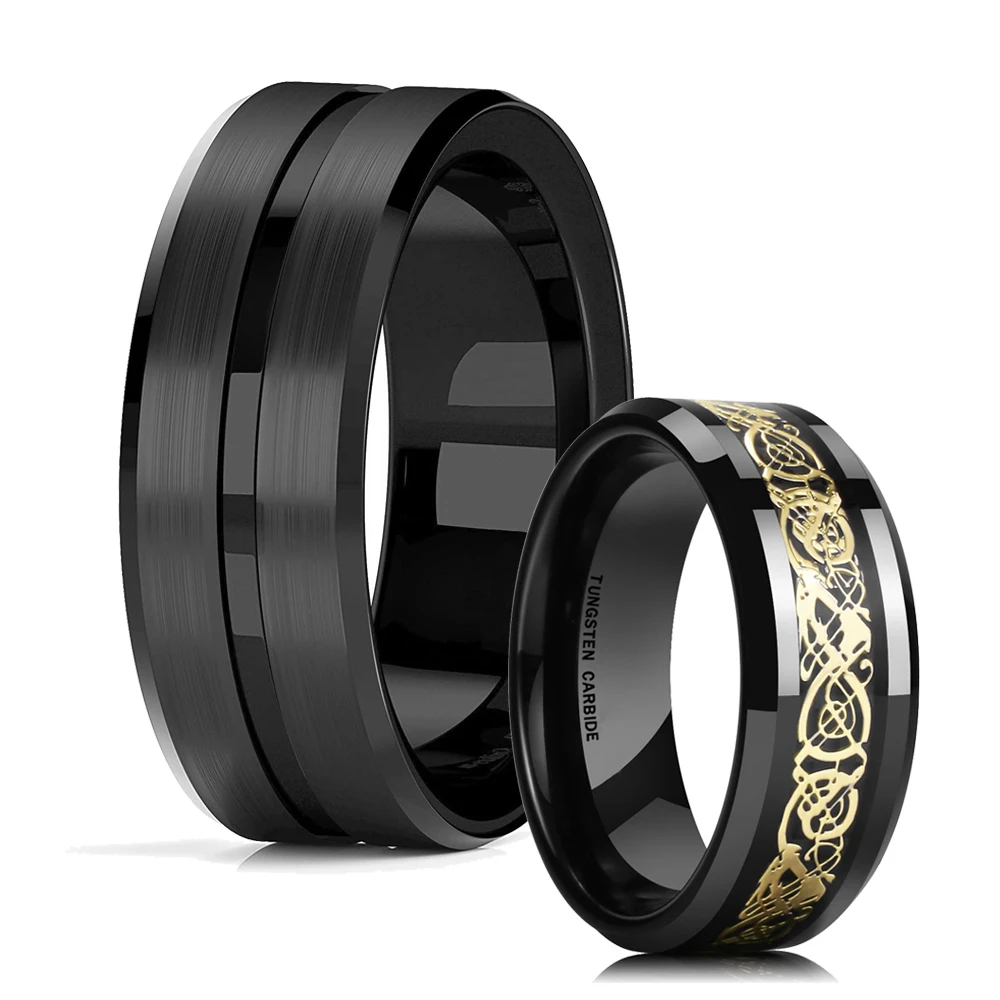 2022 трендовые 8 мм черные канавки скошенные края черные вольфрамовые свадебные кольца для мужчин золотые кельтские кольца с инкрустацией дракона черные кольца из углеродного волокна