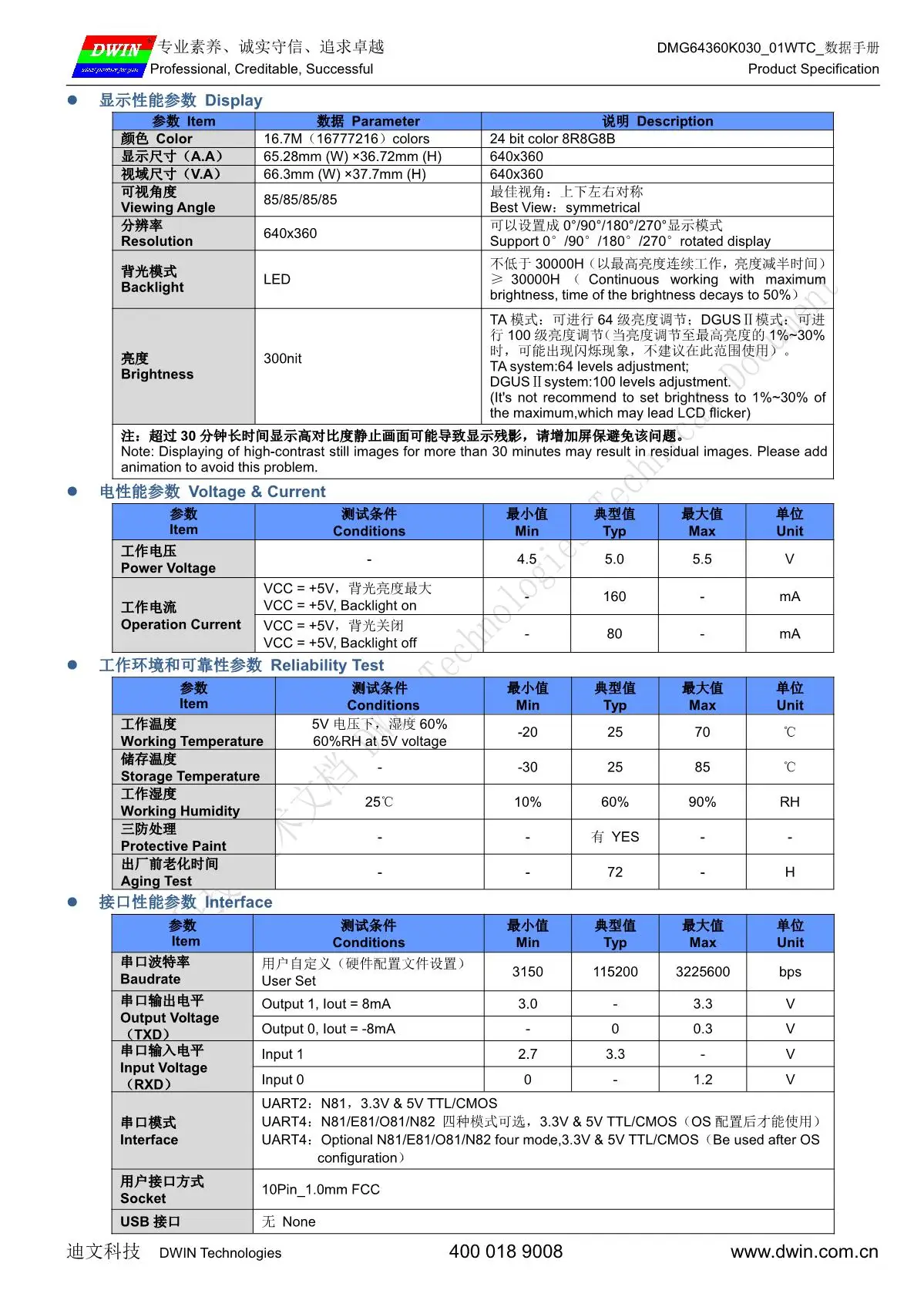 DMG64360K030_01W представляет собой 3 дюймов HMI интеллигентая (ый) UART серийный на тонкопленочных транзисторах на тонкоплёночных транзисторах ЖК-дисплей модуль дисплея. Разрешение 640*360, ips-панель. Угол обзора 85/85/85/85, 16,7 М Цвет, 24 бит.Стандартная 8051 архитектура и набор инструкций, 64 Кбайт пространства кода, 32 Кбайт оперативной памяти на чипеДисплей находится под T5L ASIC, который включает в себя два ядра, а именно GUI & OS.GUI предназначен для дизайна интерфейса пользовательского интерфейса, поддерживает функцию отображения данных/ввода, отображения текста/ввода, кривых в реальном времени, прокрутки, скольжения страницы, загрузки данных, графики и т. д.Ядро ОС можно открыть клиенту для второго развития под ОС.