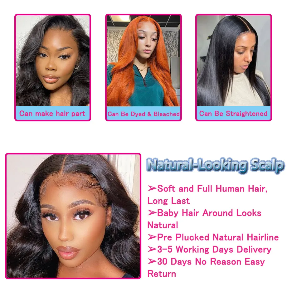 Парик из человеческих волос с прозрачной передней частью, 13 х4 дюймов