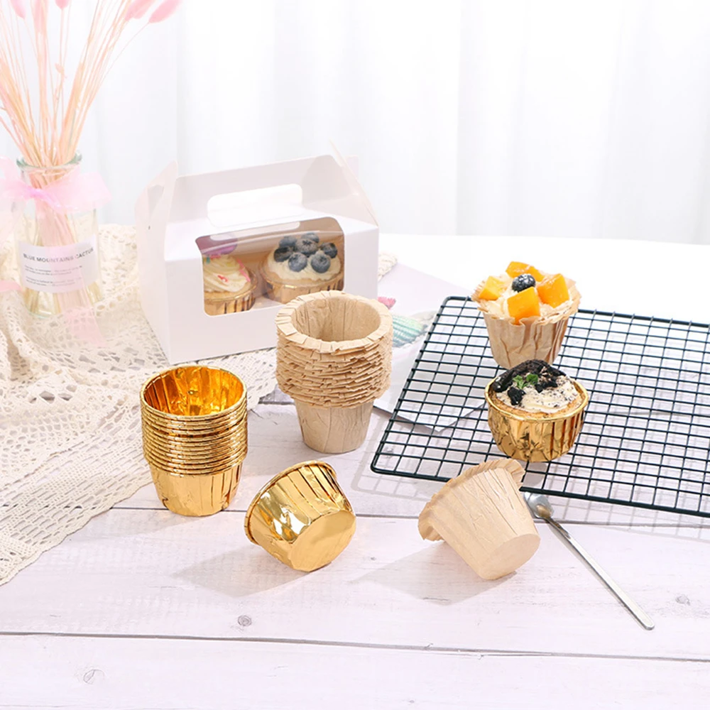 50 шт., золотой кекс, бумажный стаканчик для выпечки, Маффин, чехол, алюминиевая фольга, лайнер, обертка для торта, кондитерский инструмент, принадлежности для свадьбы, дня рождения
