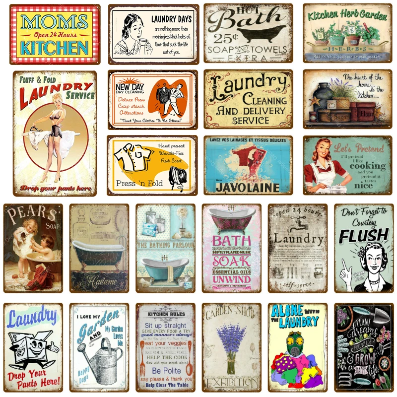 Металлическая Оловянная табличка для прачечной, кухонные травы, табличка для стен, винтажная табличка с рисунком для магазина, домашний декор для ванной комнаты YJ036