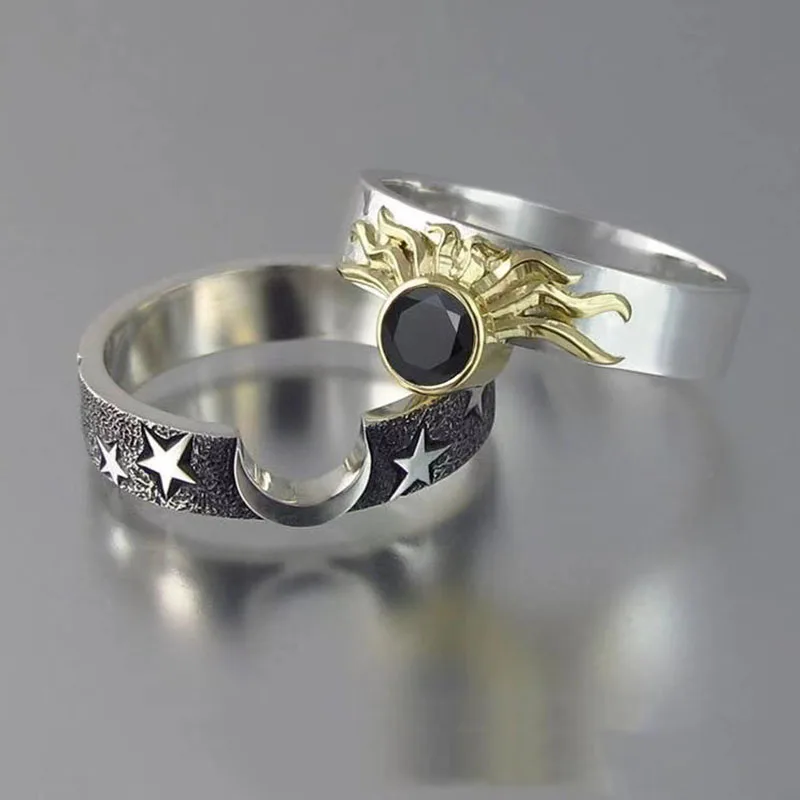 Парное кольцо с солнцем и луной, регулируемое кольцо, Открытое кольцо, модное кольцо для влюбленных, кольцо для влюбленных, кольцо для лучших друзей, парные кольца