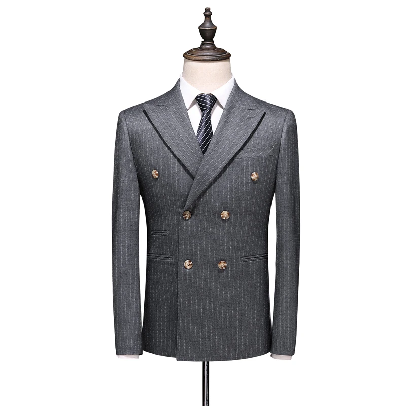Костюм мужской в полоску, двубортный, блейзер + жилет + брюки