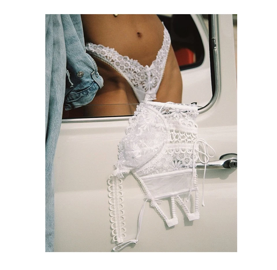 Комплект женского нижнего белья, белый кружевной хлопковый бюстгаль...