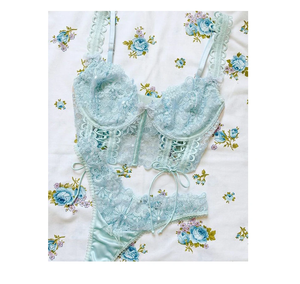 Комплект женского нижнего белья с вышивкой, Привлекательный бюстгал...
