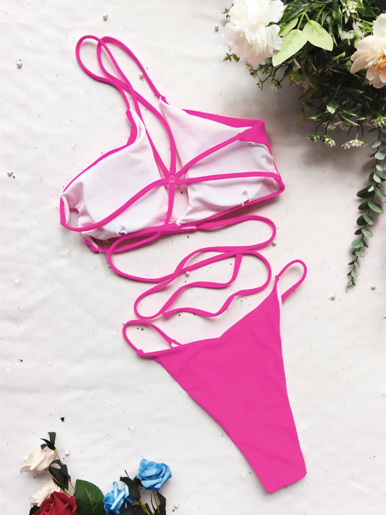 Бандажное бикини 2022, сексуальный женский купальник, однотонный ку...