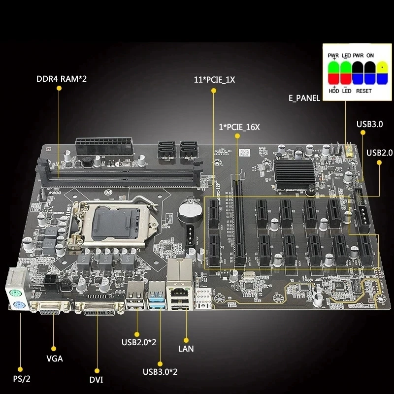 Идеальное сочетание: в соответствии с оригинальной моделью, идеальной установкой замены, высококачественными компонентами.Быстрый запуск, загрузка и передача файлов. Низкое энергопотребление, тихий, надежный и прочный.Прочный материал: Этот продукт изготовлен из высококачественного материала, прочный, длительный срок службы, прочный и стабильный в использовании.Компактный и портативный: будучи таким мини и легким, этот продукт не занимает много места и может быть легко удален.Тщательная работа: тщательный дизайн, идеальное качество изготовления, долговечность и долгий срок службы.Спецификация:Память: максимум 16 гЦвет: черныйРазмер: 29,5x1 9 см/11,61x7,5inТип памяти: DDR4Частота: 2133/2400/2800/3000 МГцСлот для памяти: 2 × DDR4Слот расширения:1 × графический слот PCI-E X1611 × PCI-E X1 графический слот2x USB2.0 булавки1x USB3.0 pin1x COM pin2x4p квадратный порт питания4xSATA3.0 портПорт ввода/вывода:PS/2 порт клавиатуры и мыши универсальный порт 21 × сетевой порт RJ451 × DVI выход высокой четкости2 порта USB 3,0, 4 порта USB 2,01 VGAПримечание:1. Эта материнская плата поддерживает только процессоры 6-го и 7-го поколения, не поддерживает 8/9/10 поколения.2. Допускается погрешность в 0-1 дюйм из-за ручного измерения. Спасибо за понимание.3. Мониторы не калибруются так же, цвет товара, отображаемый на фотографиях, может немного отличаться от реального объекта.Описание:С высококачественной рамой из алюминиевого сплава и акриловый веер, который может эффективно рассеивать тепло.Внешний вид идеально подходит для игрового компьютера чехол и радиатор.С быстрой теплопередачей и поддерживать отличную работу процессора.Подходит для Intel 775/1150/1155/1156/1151.Эффективный вентилятор охлаждения при 2400 об/мин является лучшим тепловым решением.Характеристики:Наименование товара: кулер для процессораРазмер изделия: 115x100x75ммРазмер вентилятора: 90x90x25ммНоминальное напряжение: 12 ВВходная мощность: 2,5 WСкорость вентилятора: 2400 ± 10% об/минУровень шума: 23.5DBAТип подшипника: гидравлический подшипникУпаковочный лист:1 х комплект материнской платы B250 BTC Mining