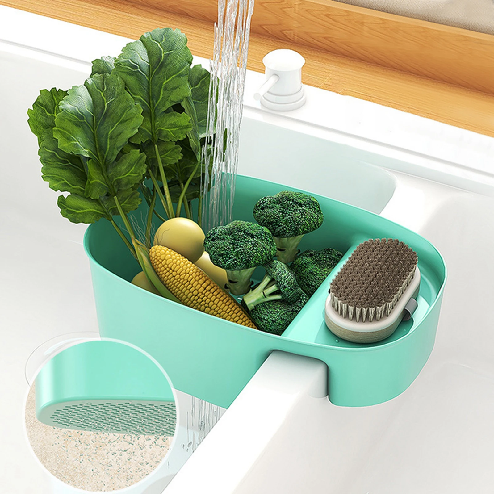 Телескопический Раковина Стеллаж для хранения держатель с регулируемой 2-в-1 раковина, записная книжка, расширяемая корзина для раковины, легкий в установке и очистке, сливная Раковина Стеллаж для выставки товаров, для раковины, держатель для губки + вешалка для посуды для домашней кухни