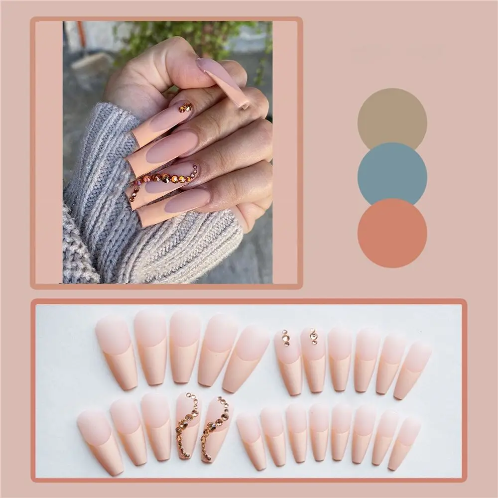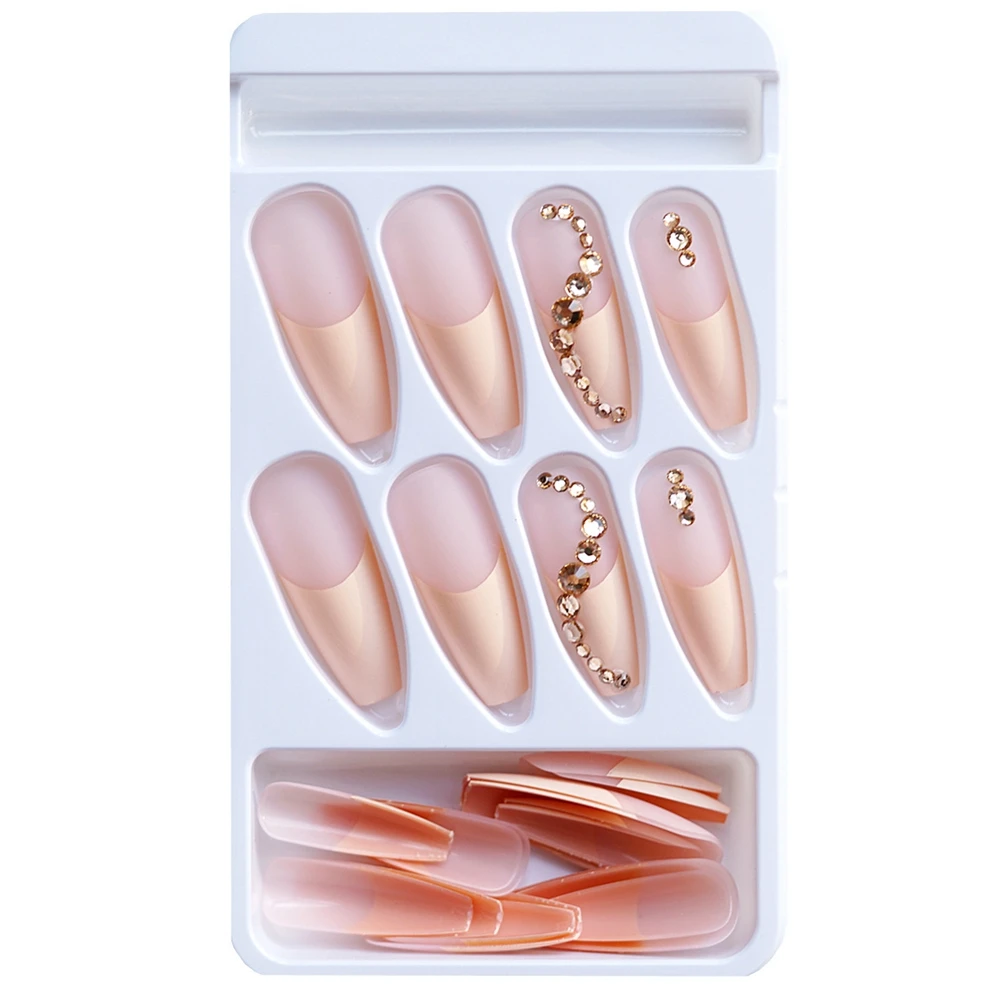 Длинные гвозди, накладные ногти шампанского, французского балерины, накладные ногти с алмазным дизайном, искусственные накладные ногти с полным покрытием, нажимные ногти