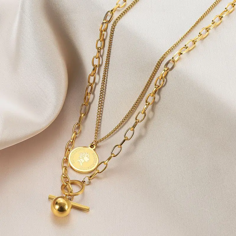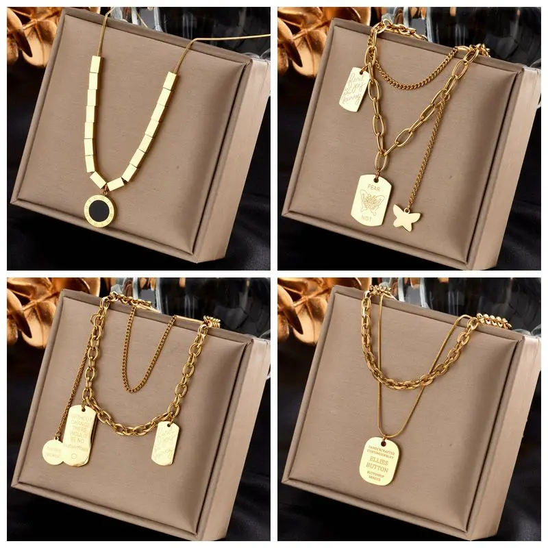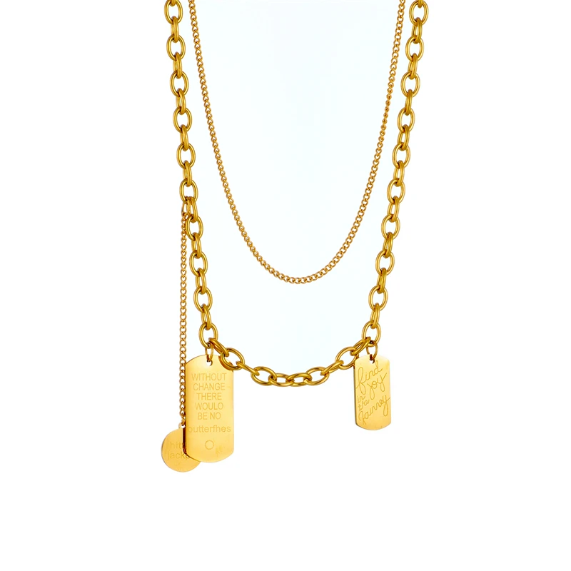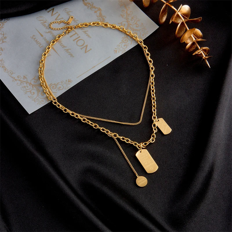 Женская двухслойная цепочка MEYRROYU, позолоченная цепочка из нержавеющей стали с прорезями, в стиле панк, хип-хоп, уличная мода, ювелирные изделия