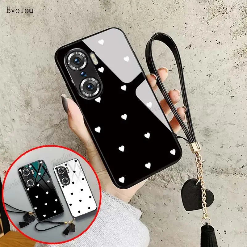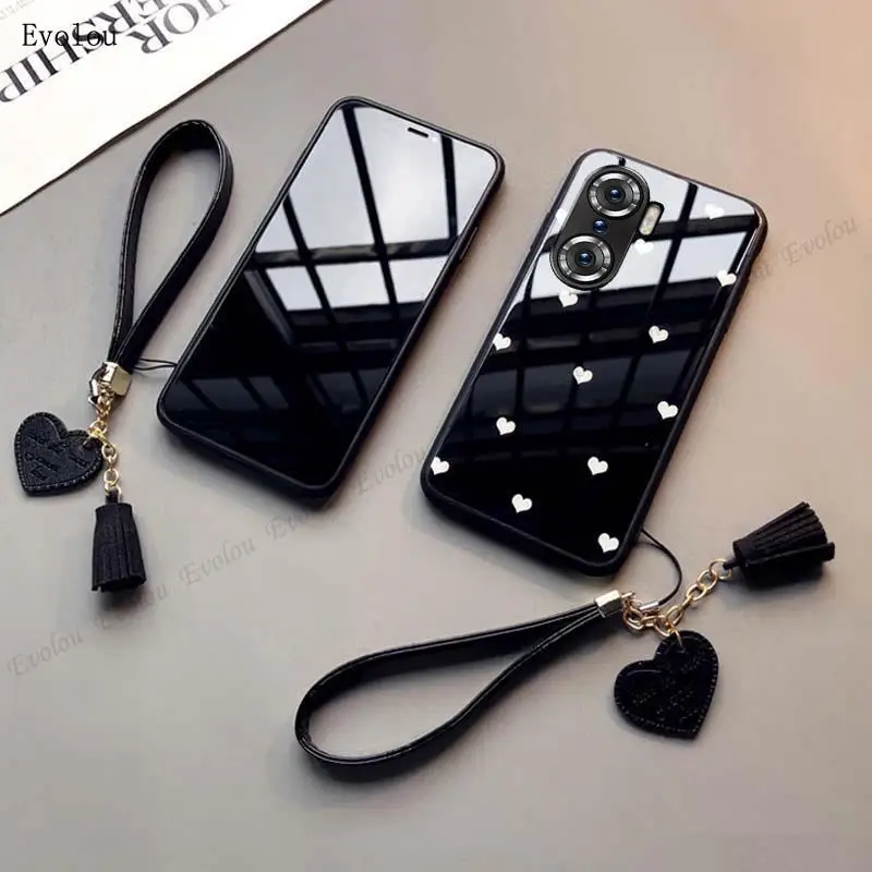 Для Huawei Honor 60 Pro Чехол с кисточкой и ручным ремешком для Honor 50 SE 30S 20 Lite 10 Love Heart окрашенные закаленное стекло противоударный чехол