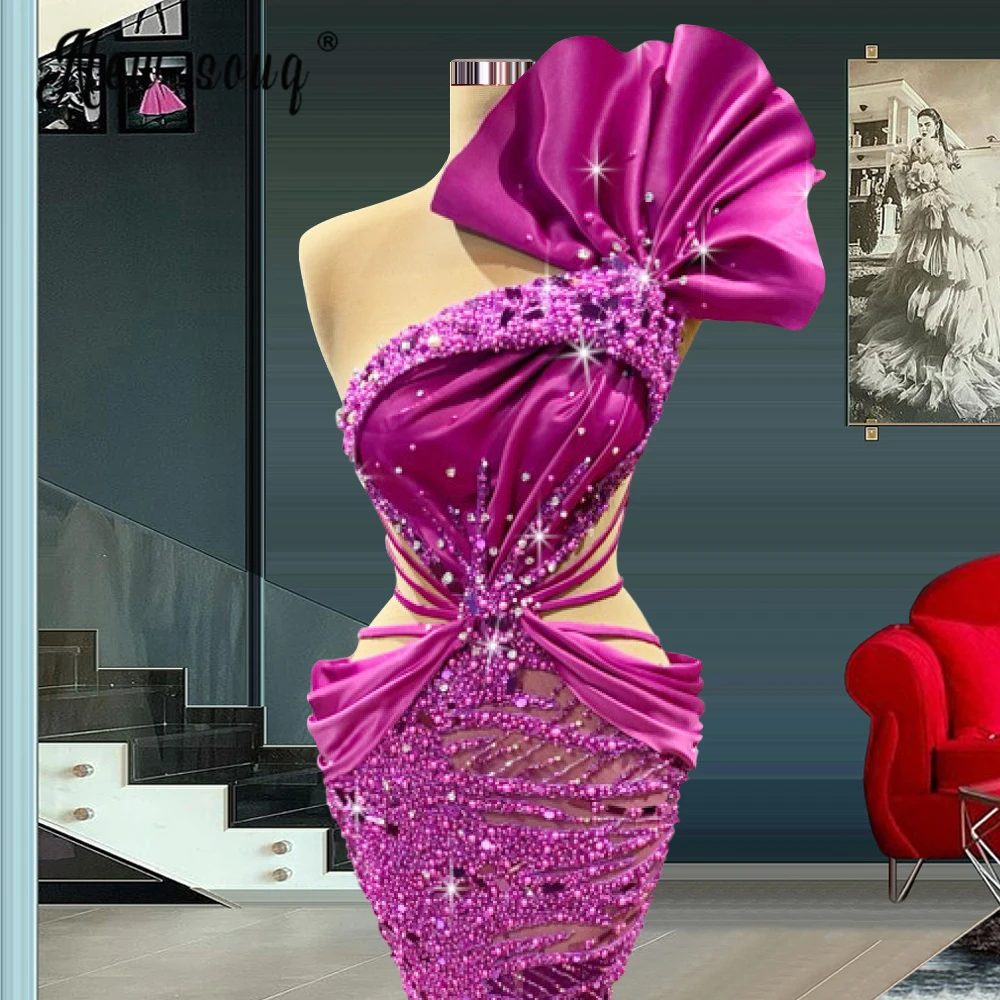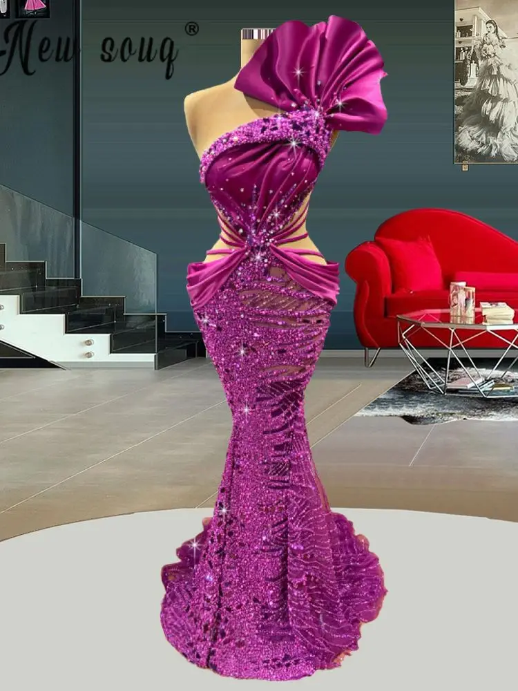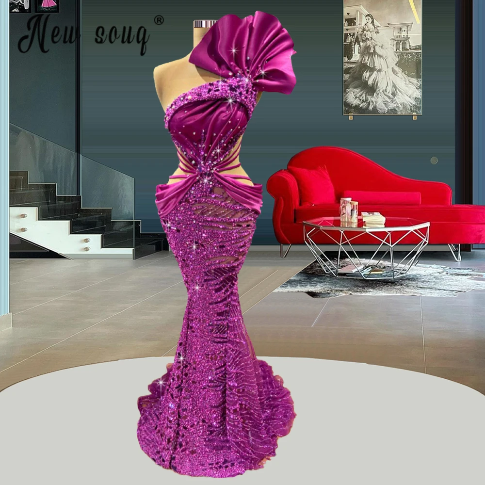 Сверкающие Вечерние платья на одно плечо Aso Ebi размера плюс с оборками и пышными рукавами, платье с блестками для выпускного вечера для женщин из Южной Африки