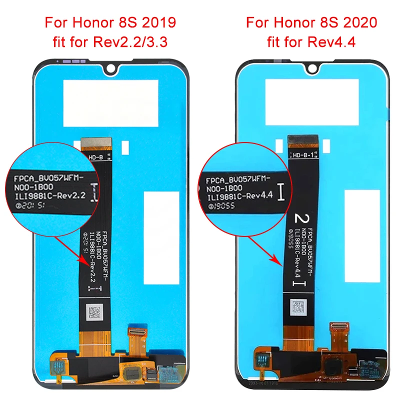 Есть 2 модели для Honor 8s, для Honor 8s 2019 кабель Is Rev 2,2 версия, для Honor 8s 2020 версия Rev 4,4(Пожалуйста, внимательно проверьте модель вашего телефона)