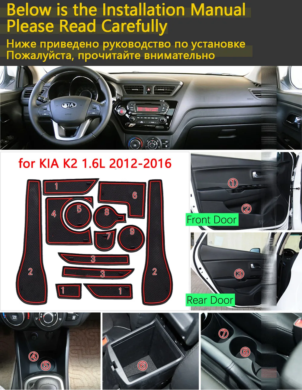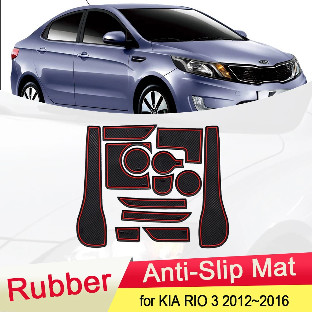 Для KIA RIO 3 K2 1.6L 2012 ~ 2016 2013 2014 резиновый противоскользящий коврик, дверной паз, подстаканник, слот для ворот, подстаканник, аксессуары для салона автомобиля