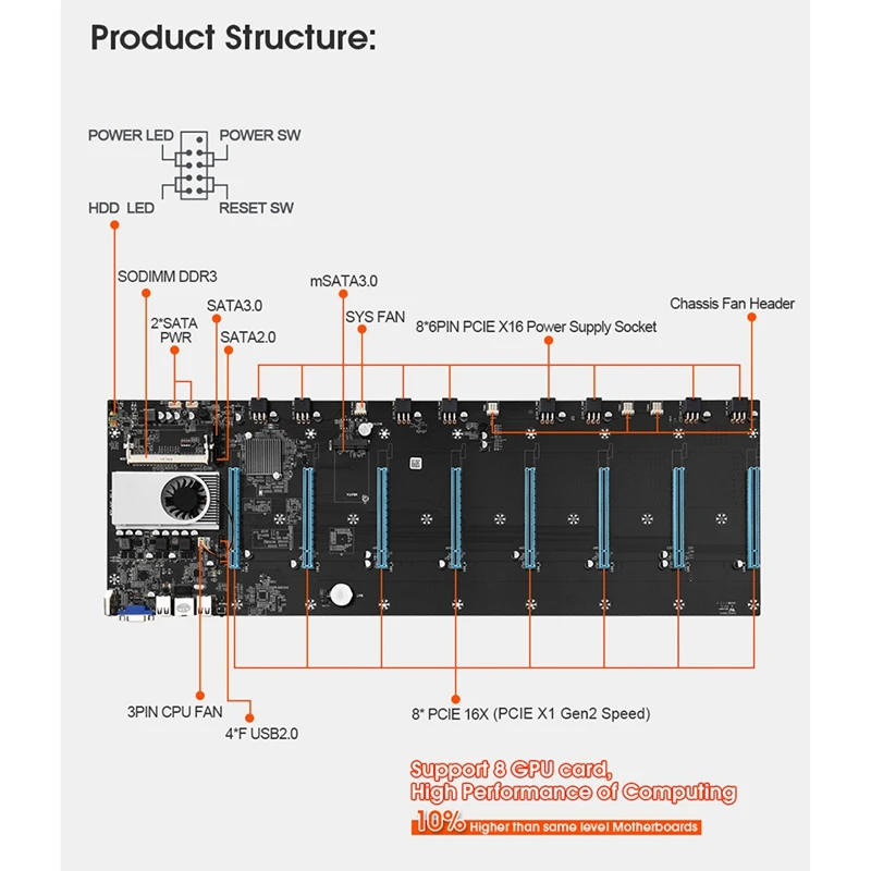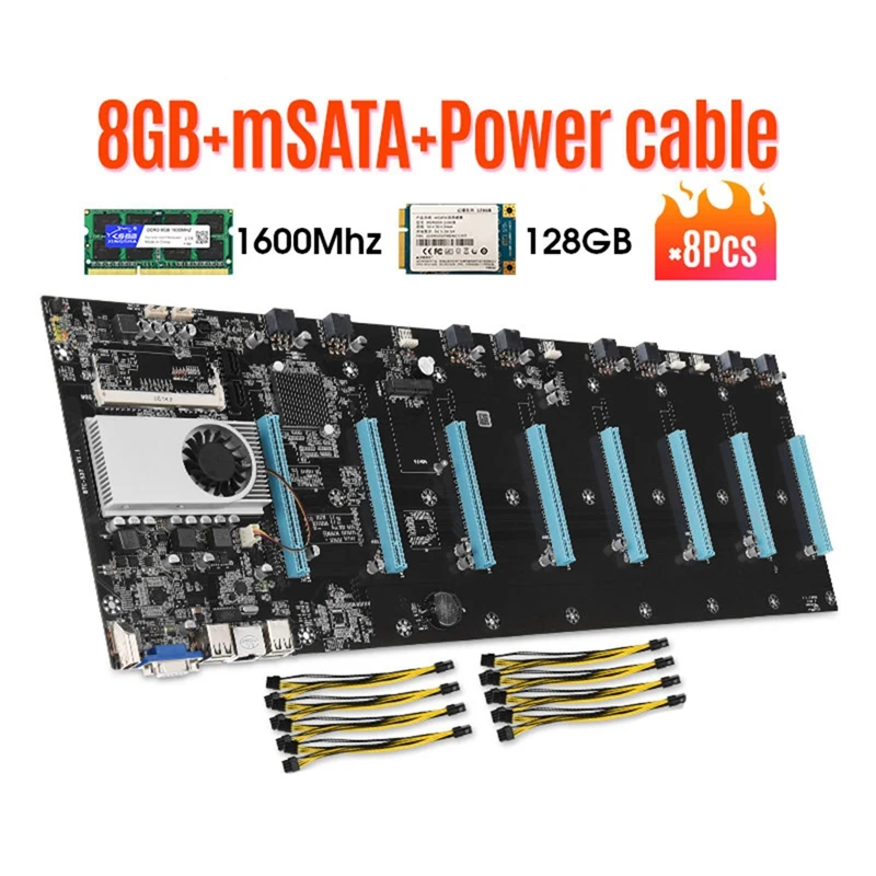 Набор материнской платы для майнинга с 8GPU 128 ГБ MSATA SSD и памятью 8 ГБ DDR3, комплект материнской платы для майнинга биткоинов Eth