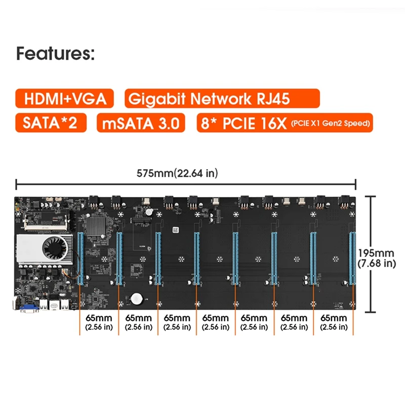 Тип разъема: Бортовой процессорТип интерфейса хранения: SATA 2; SATA 3Состояние товара: НовыйНомер модели: BTC-S37Специальная функция: Поддержка разгонаМаксимальная емкость оперативной памяти: 8 ГбПроизводитель микросхем:Задние Порты ввода/вывода: 1x RJ45; VGA(D-Sub); 8 x USB 2,0; HDMI 1,0Тип памяти: DDR3Сценарий использования: энтузиасты и разгон; Домашние; Офисные; ГорнодобывающиеКоличество PCI: 5Стандарты PCI - E: PCI - E 3,0PCIe слот расстояние: 65 мм (2,56 дюймов)Цвет: черныйМатериал: пластикПосылка:1 х BTC-S37 материнская плата1x8G DDR3 1600 МГц RAMЖесткий диск 1x128G8 x Кабель ПитанияТолько вышеуказанная посылка, другие товары не включены.Примечание: светильник и различные дисплеи могут привести к тому, что цвет товара на картинке немного отличается от реального. Допускается погрешность в измерениях +/- 1-3 см.