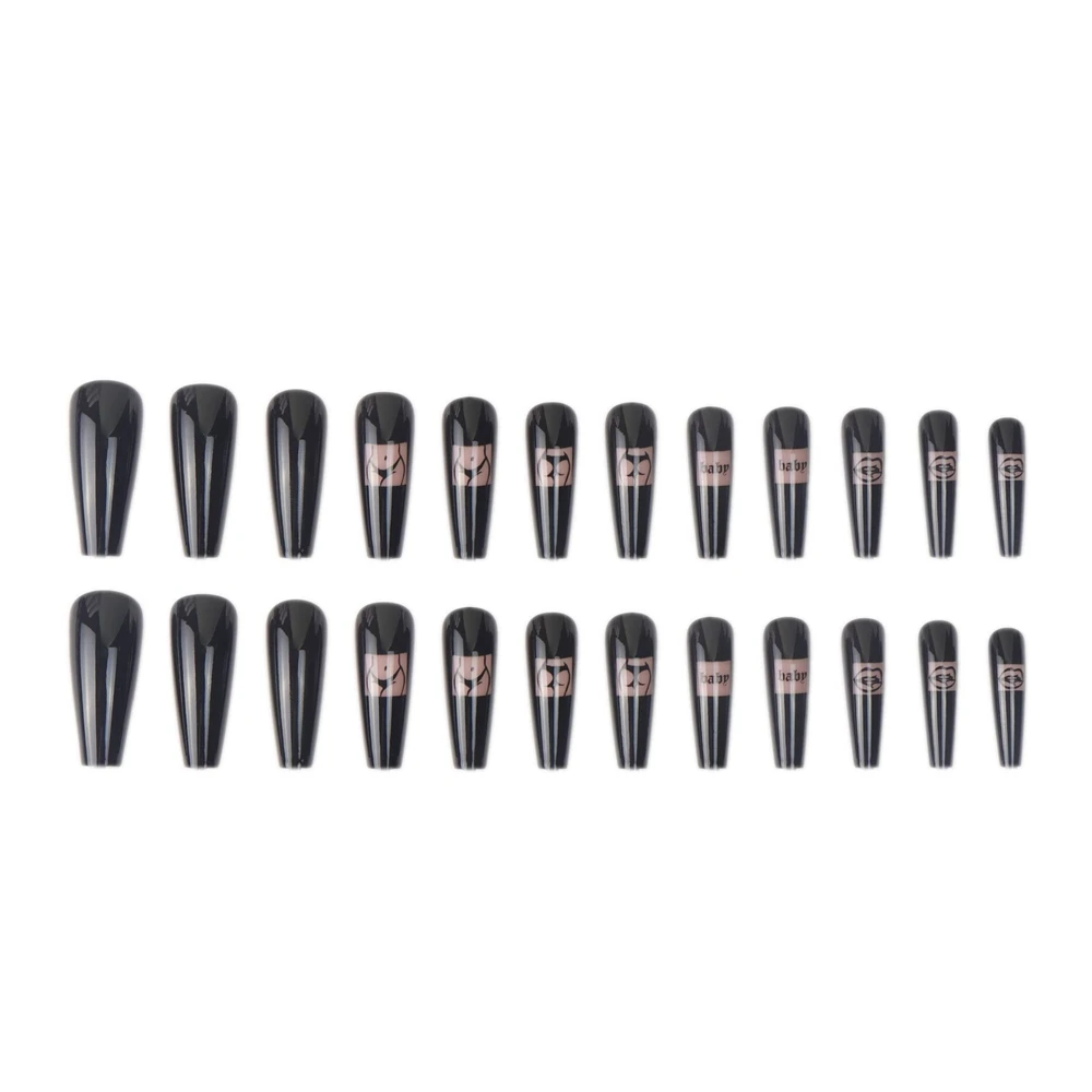 Накладные ногти 24 шт., накладные ногти в гробе, привлекательный дизайн с узором, черные длинные накладные ногти для французского балета, Типсы для ногтей, искусственные ногти