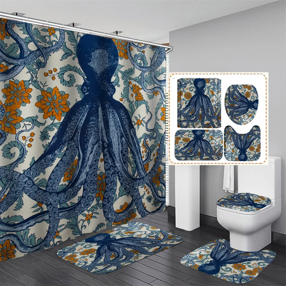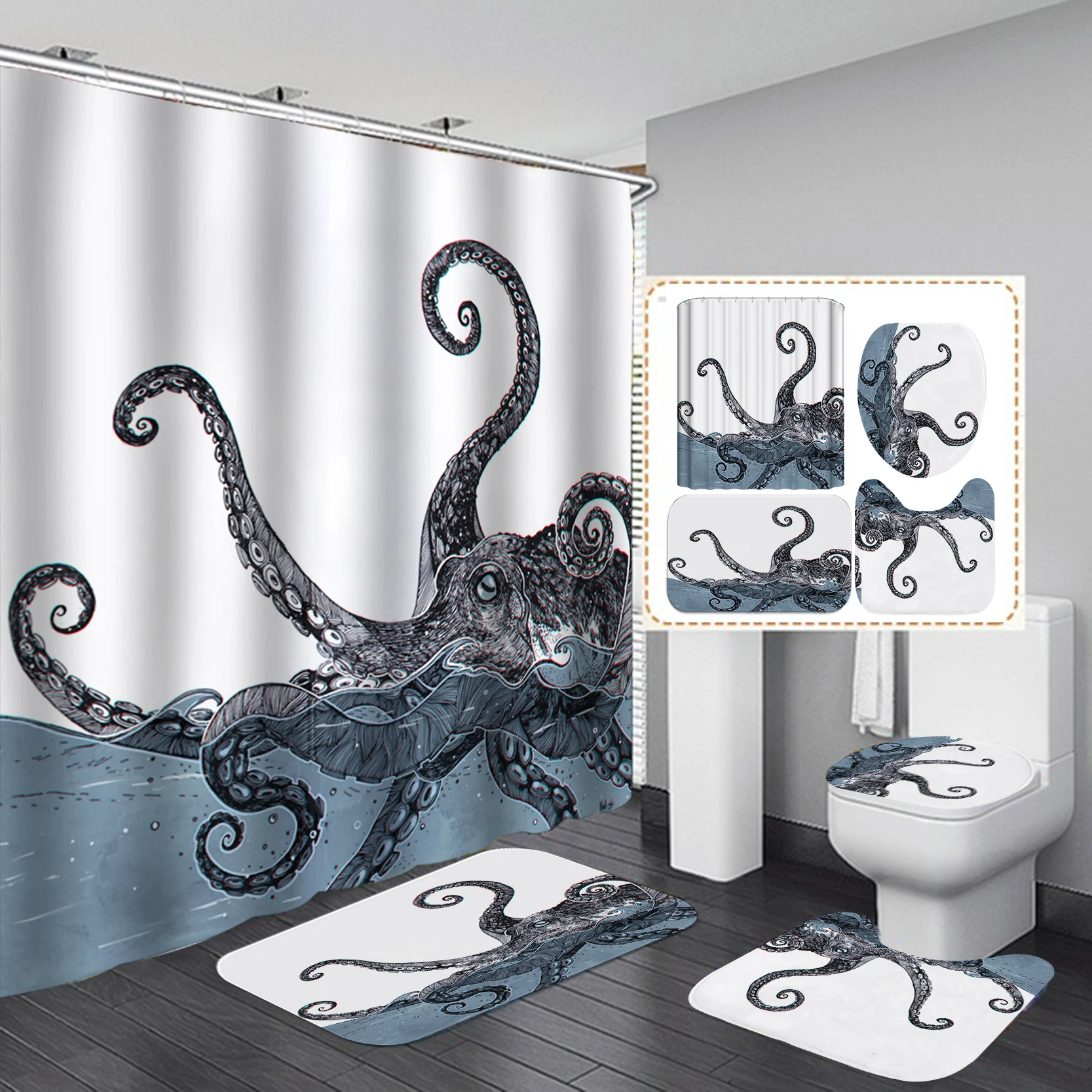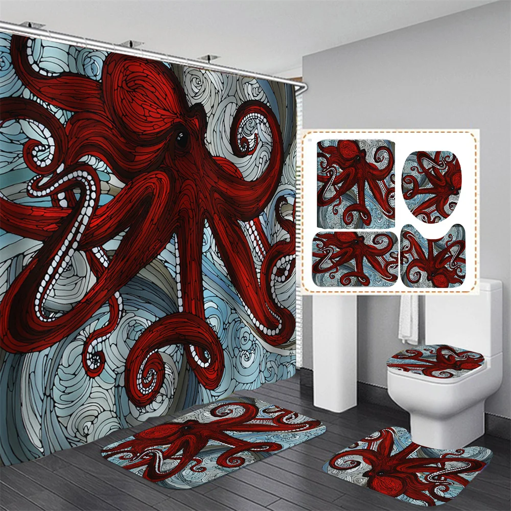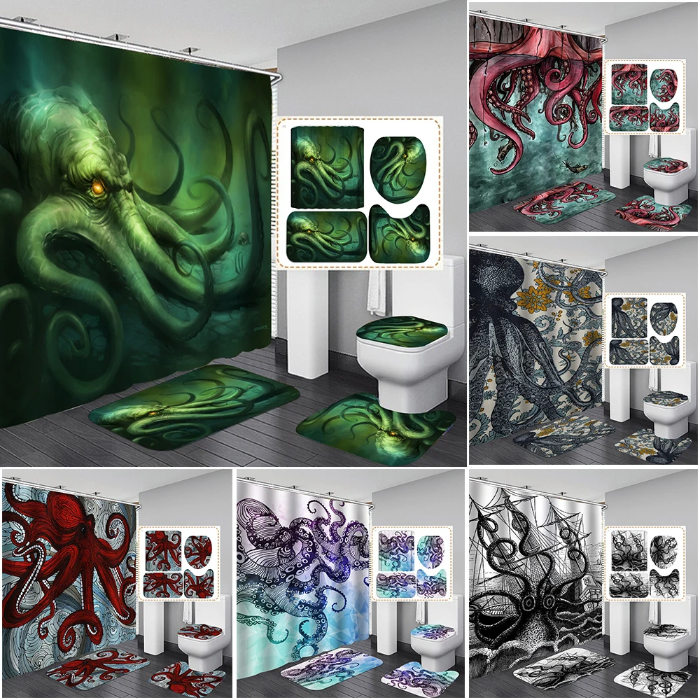 Занавеска для душа с принтом монстра-осьминога, водонепроницаемая занавеска для ванной комнаты с крючками для украшения дома, занавеска для ванной