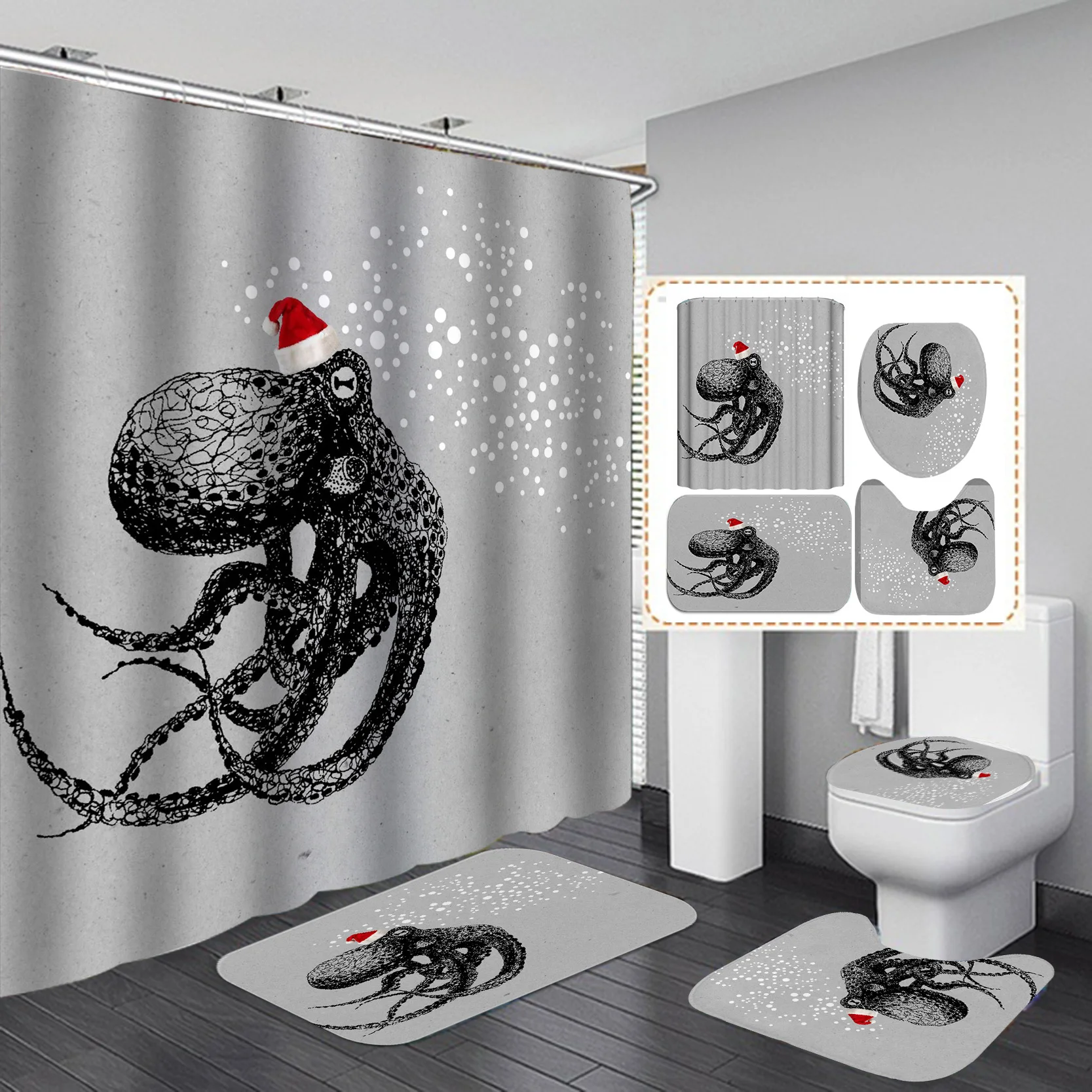 Набор рождественских занавесок для душа с Санта-Клаусом, коврик для...