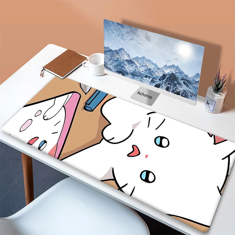 Милый розовый коврик для мыши в виде кошки, милые аксессуары для комнаты, компьютерный Настольный коврик для компьютера, большой коврик для мыши XXL 90x40