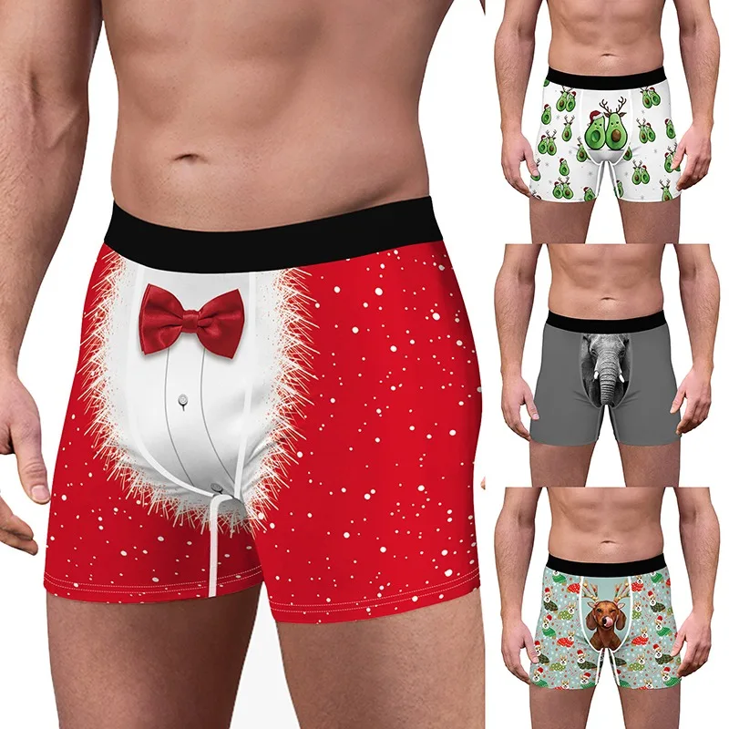 Боксеры мужские с забавным 3D принтом, рождественские трусы-боксеры...
