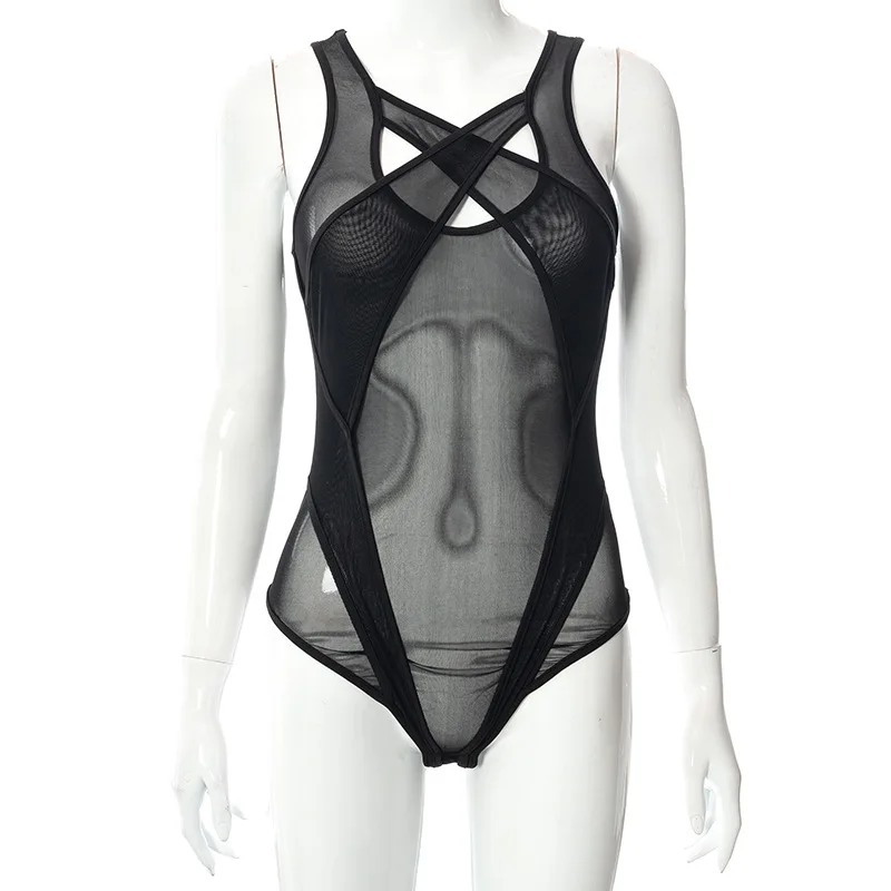 Женское прозрачное сексуальное боди без рукавов UYEE, топ с открыты...
