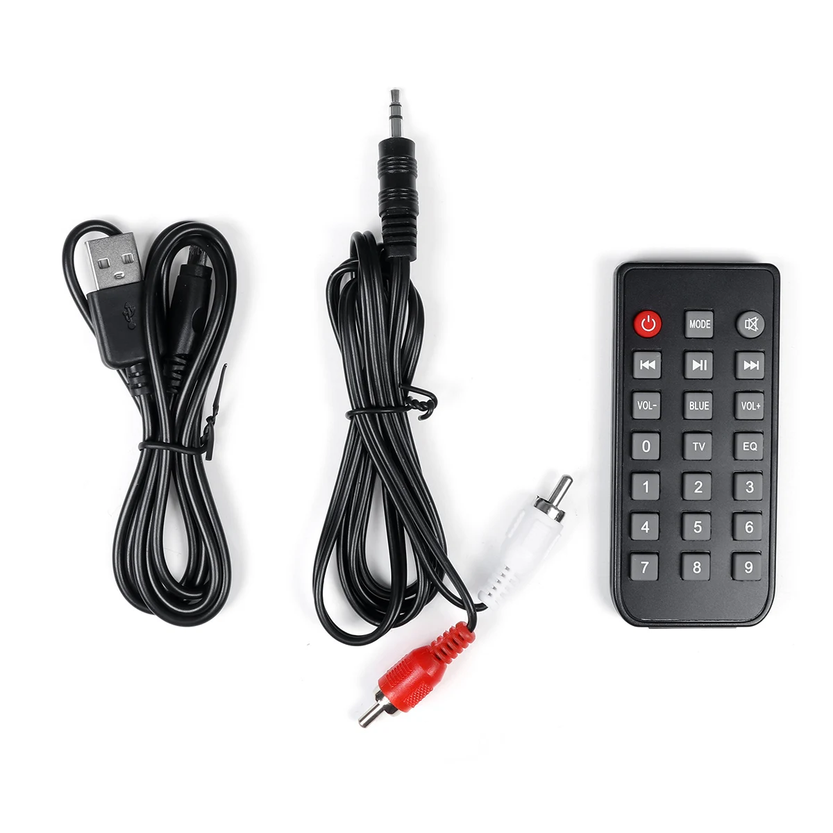 Спецификация:Название продукта: ТВ Саундбар динамикМатериал корпуса: пластикЦвет: черныйРазмер саундбара: 55x5x4 см (ДхШхВ)Посылка Размеры: 58x8,5x10 см (Д x Ш x В)Количество динамиков: 4 шт.Способ подключения: подключение по bluetoothТип интерфейса: USBЕмкость аккумулятора: 2000 мАчЧастота: 20 Гц-20 кГцВыходная мощность: 5 Вт * 4Отношение сигнал-шум: плюс или минус 80 дБИсточник питания: Встроенный литиевый аккумуляторКанал: 2Время: 3 часаРасширение памяти: 32 ГБЭффективное расстояние: 10 метровФормат воспроизведения: MP3, WAV, WMA, FLAC, APEПоддержка формата: tf-картаИсточник входного аудио: bluetooth, tf-карта, RCA, 3,5 ммВодонепроницаемая функция: IPX4Мощность питания: Номинальное напряжение 3,7 V, режим зарядки DC5V, 1A Время зарядки: около 2 чПриема аудио сегмент: 87,5-108Количество: 1 комплектОсобенности:-Обновленная версия роскошного аудио, 4 динамика, 3D стерео объемный звук, эффект абсолютно потрясающий.Смотреть телевизор дома-это как смотреть фильм в кинотеатре. Это дает вам звук на уровне театра.-Bluetooth 4,2, полностью совместим с большинством устройств bluetooth, беспроводное воспроизведение, только нужно успешно подключиться к bluetooth один раз, чтобы автоматически соответствовать.-Fm-радио, может наслаждаться музыкой и веселым fm-радио.-С кабелем RCA, он может быть непосредственно подключен к телевизору и компьютеру.-Встроенный звуковой процессор DSP, звук чистый и без шума.-Оснащен пультом дистанционного управления, свободный выбор режима.-Простое подключение и простота в эксплуатации.Посылка:1 Саундбар1x пульт дистанционного управления1x RCA кабель1x зарядный кабель1x Руководство пользователяПримечание:1. Мы предоставляем четкие изображения, измерения, где это возможно. Пожалуйста, проверьте как можно больше, чтобы убедиться, что товар тот, который вам нужен.2. Замеры сделаны вручную, поэтому возможны 0,5-1 дюйм разницы в связи с тем, что измерения выполнены вручную.(1 дюйм = 2,54 см)