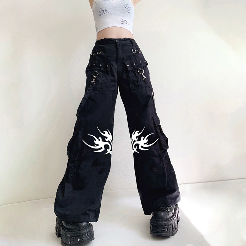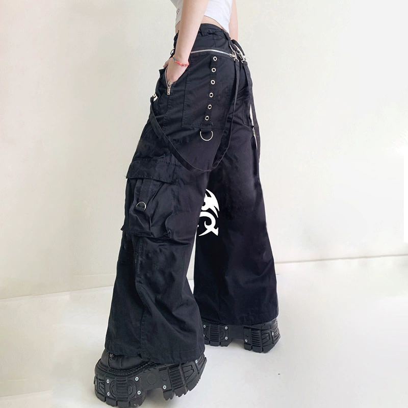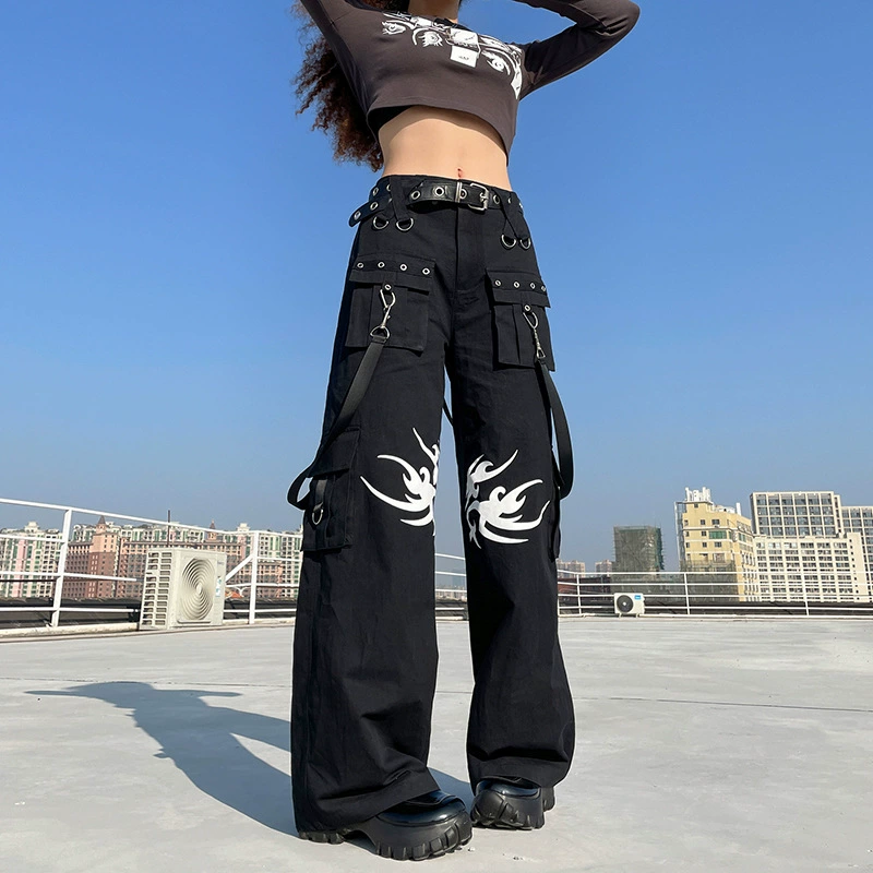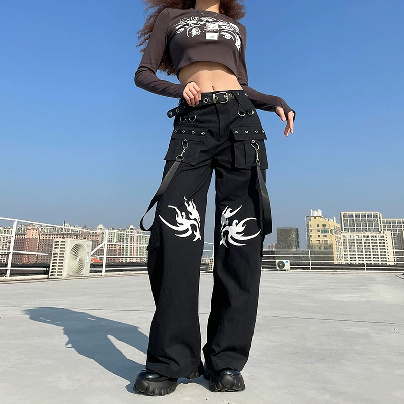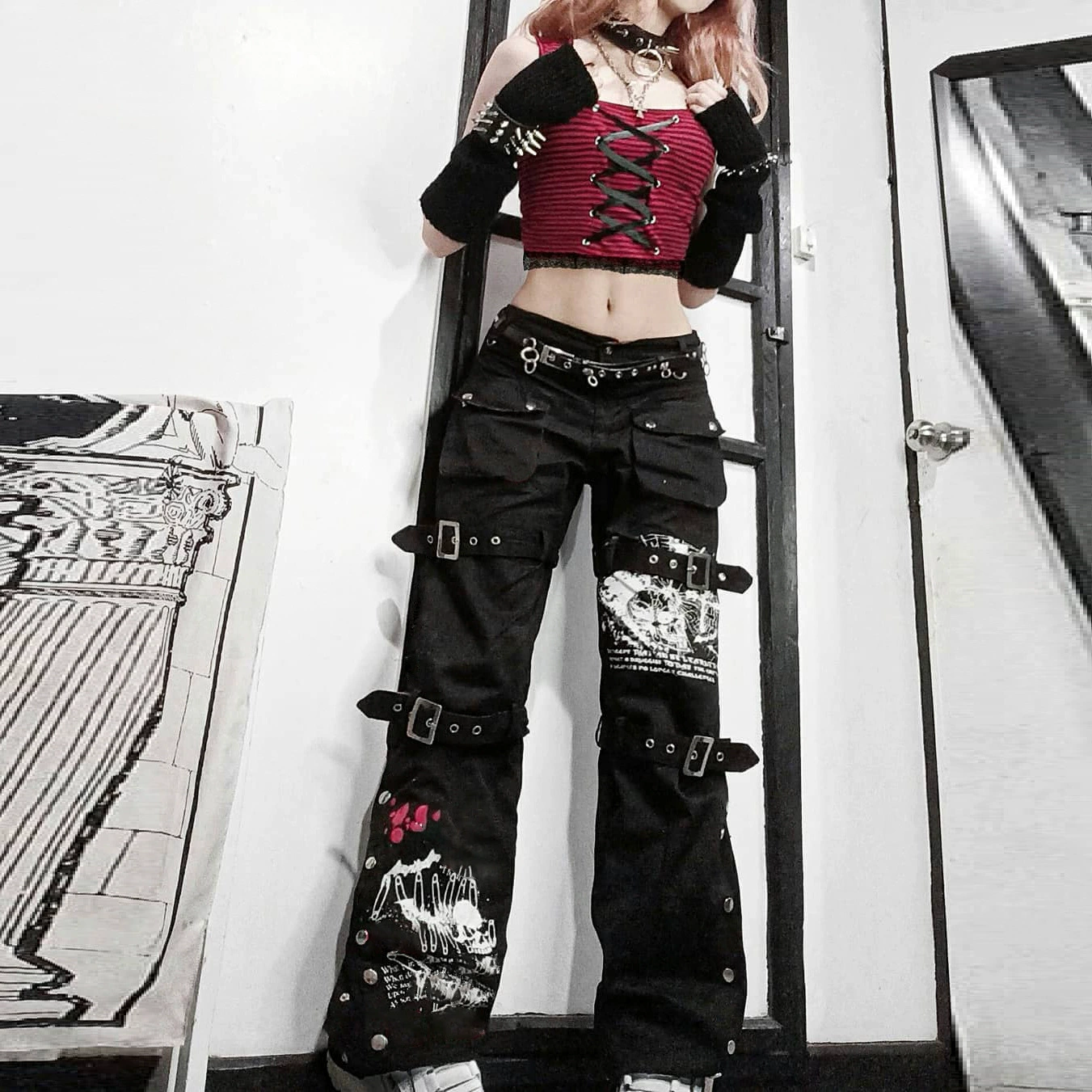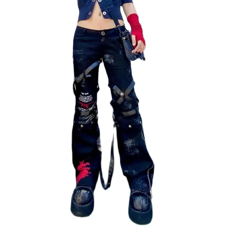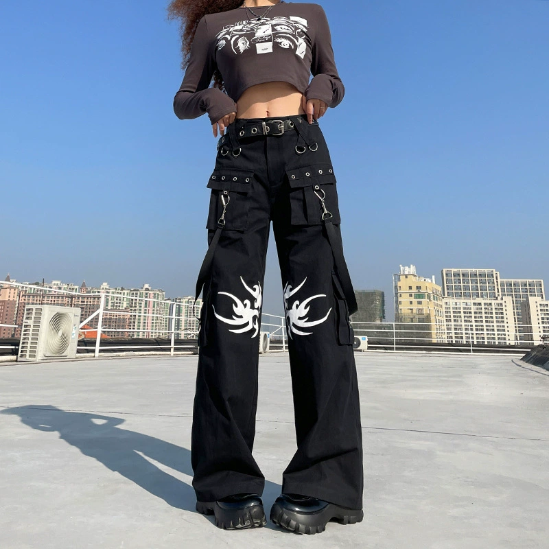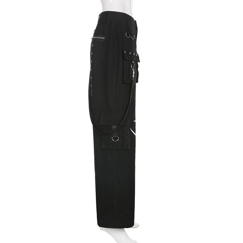 Брюки WeiYao в стиле панк черные Y2K женские, уличная одежда с принтом в виде ленты, в стиле хип-хоп 90-х годов