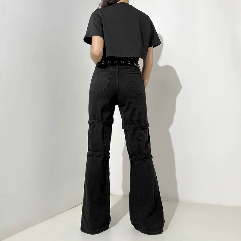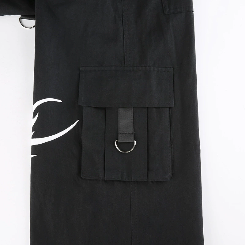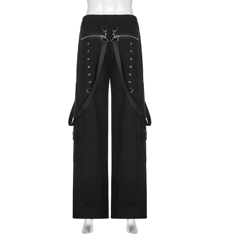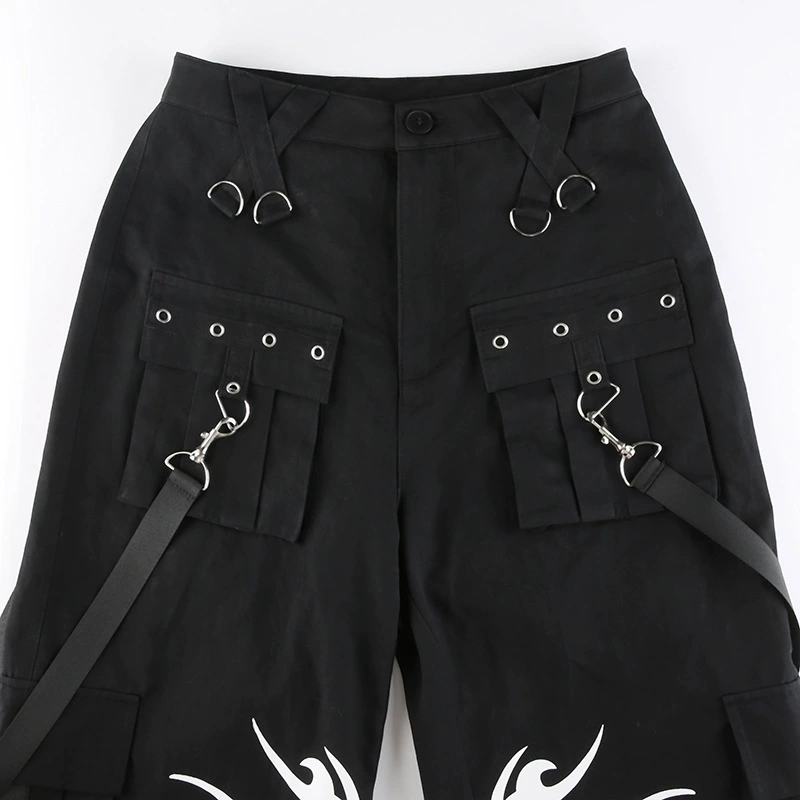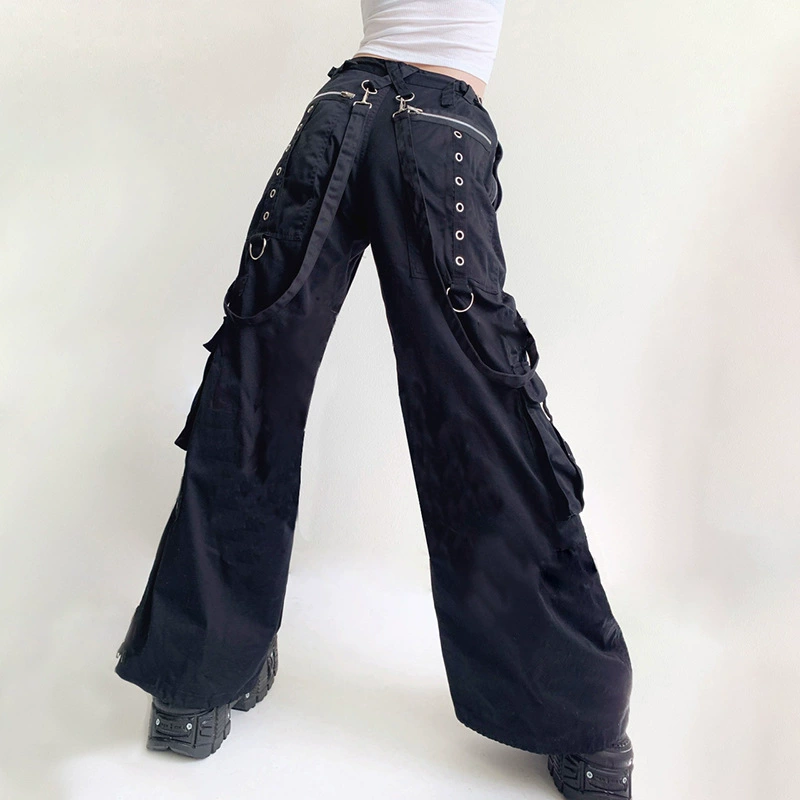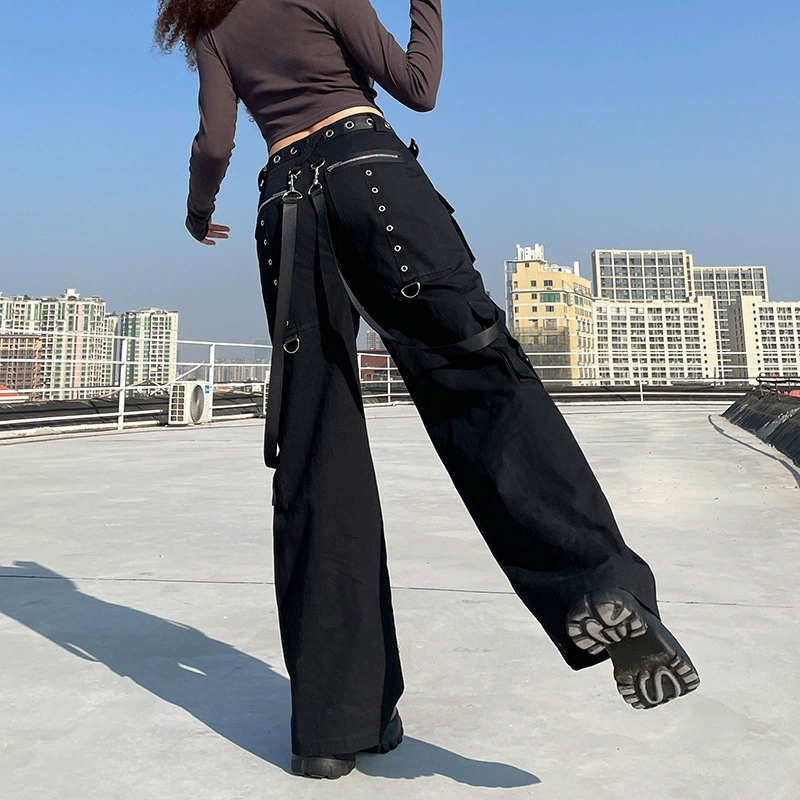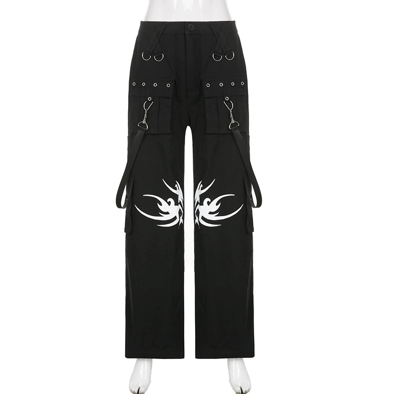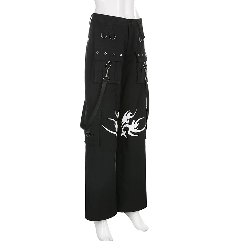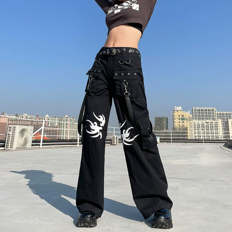 Брюки WeiYao в стиле панк черные Y2K женские, уличная одежда с принтом в виде ленты, в стиле хип-хоп 90-х годов