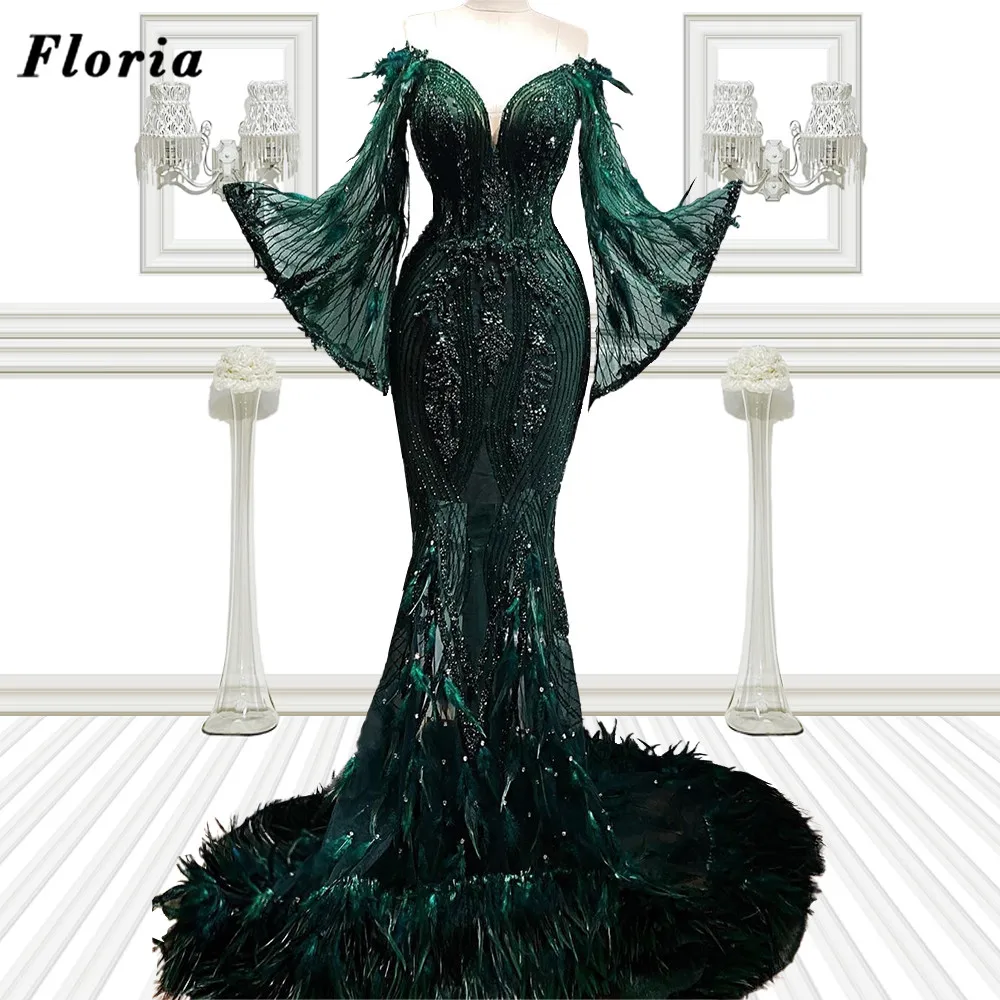 Индивидуальные бисерные платья для свадеб Дубай арабского размера плюс с перьями Вечерние платья халат De Soiree бальное платье для выпускного вечераUSD 288,75/шт.