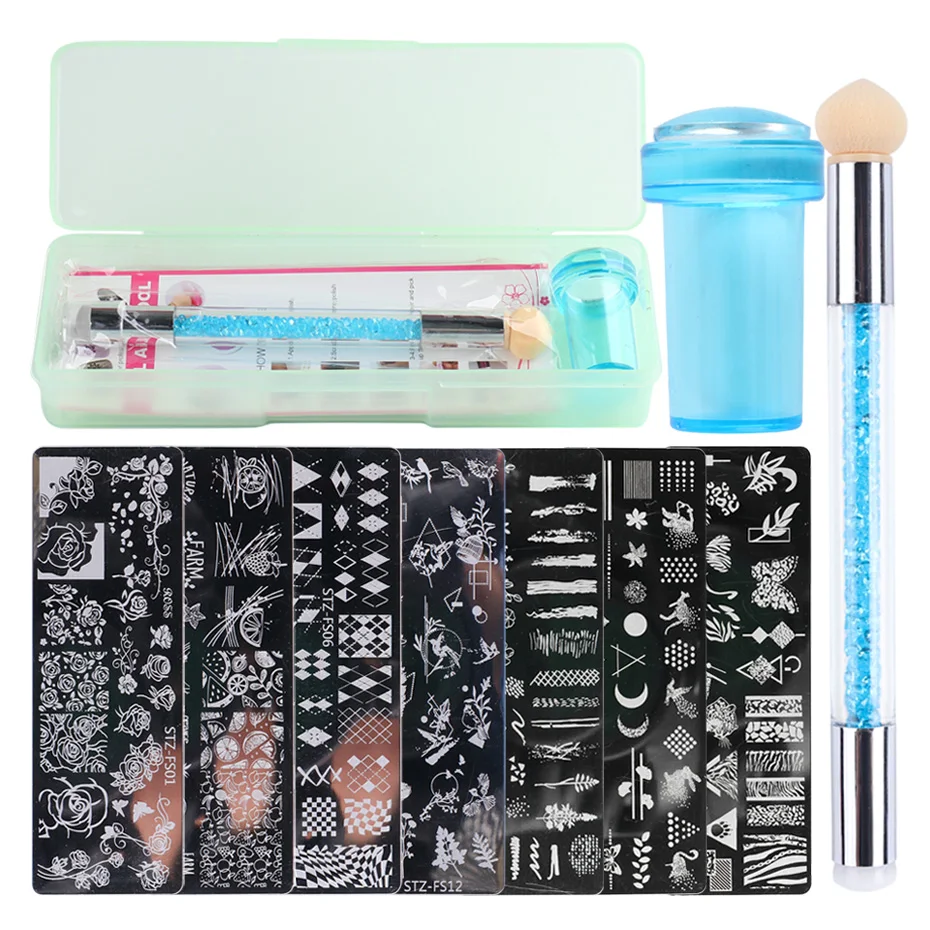 9 шт.компл. пластины для стемпинга ногтей силиконовые штампы шаблоны для стемпинга для дизайна ногтей трафареты для печати изображений Набор для маникюра