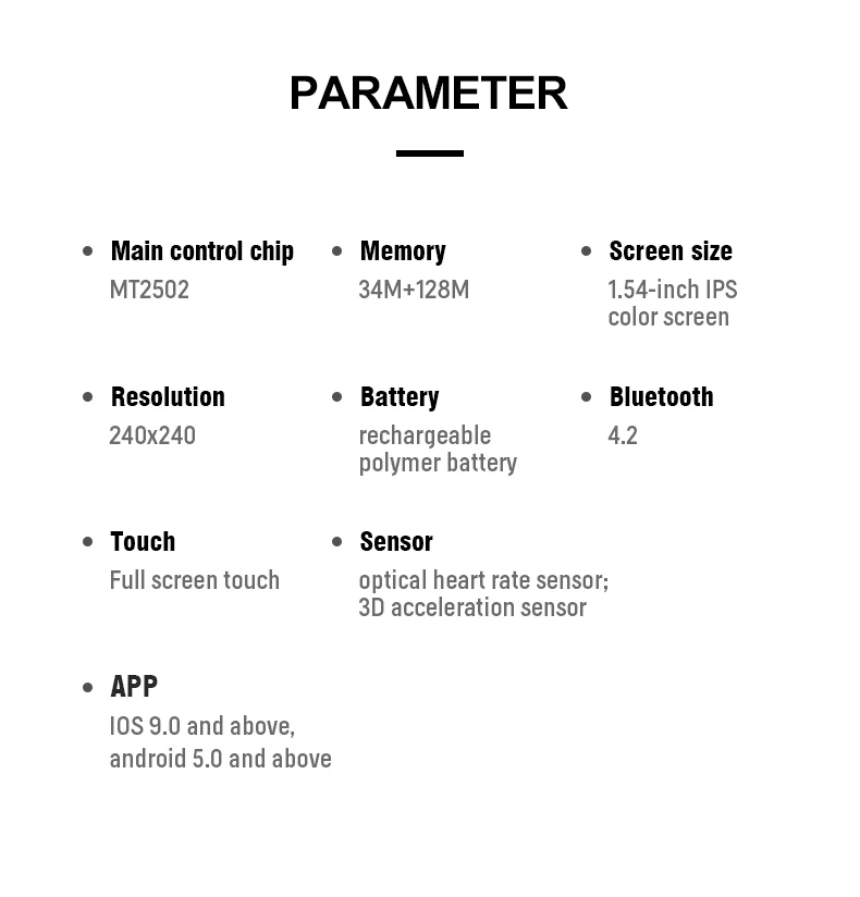 4. Экран: HD IPS, 240*240 пикселей 2.5D изогнутый полный сенсорный экран