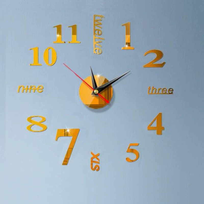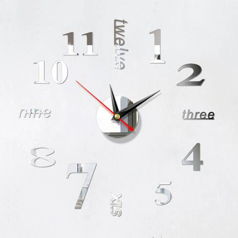 Зеркальные настенные часы сделай сам, акриловые 3d-наклейки, Европе...