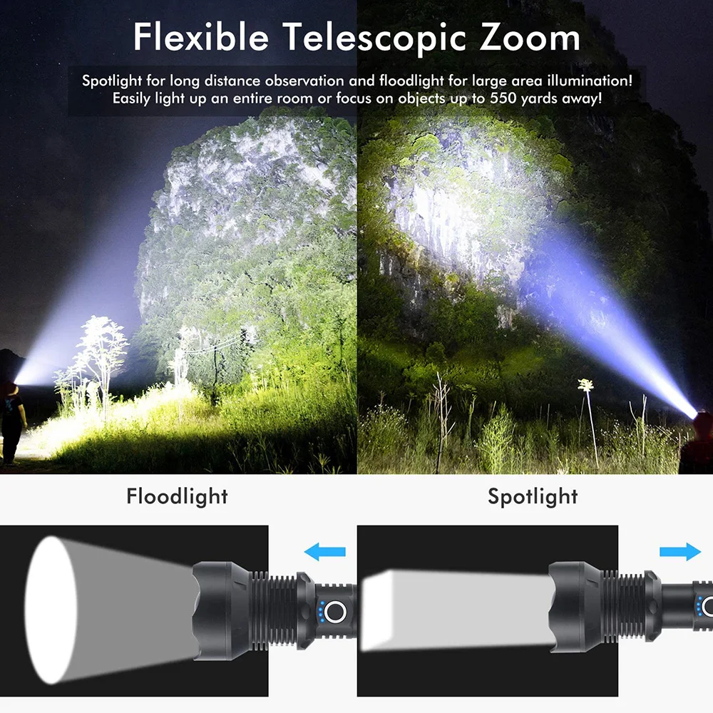 ※Мы обращаем внимание на качество и обновление продукции. Предоставление клиентам новейших и высококачественных продуктов-это наш принцип обслуживания. Поэтому мы разработали фитиль XHP160-16CORE для этого фонарика. Это самый мощный и Яркий фитиль в AliExpress. Используйте аккумулятор 1*18650 или 1*26650, время использования 18650 8 часов, время использования 26650 12 часов, расстояние освещения выше 500-2000 метров, 7 режимов, подходит для оповещения, кемпинга, патруль, охота и т. Д.