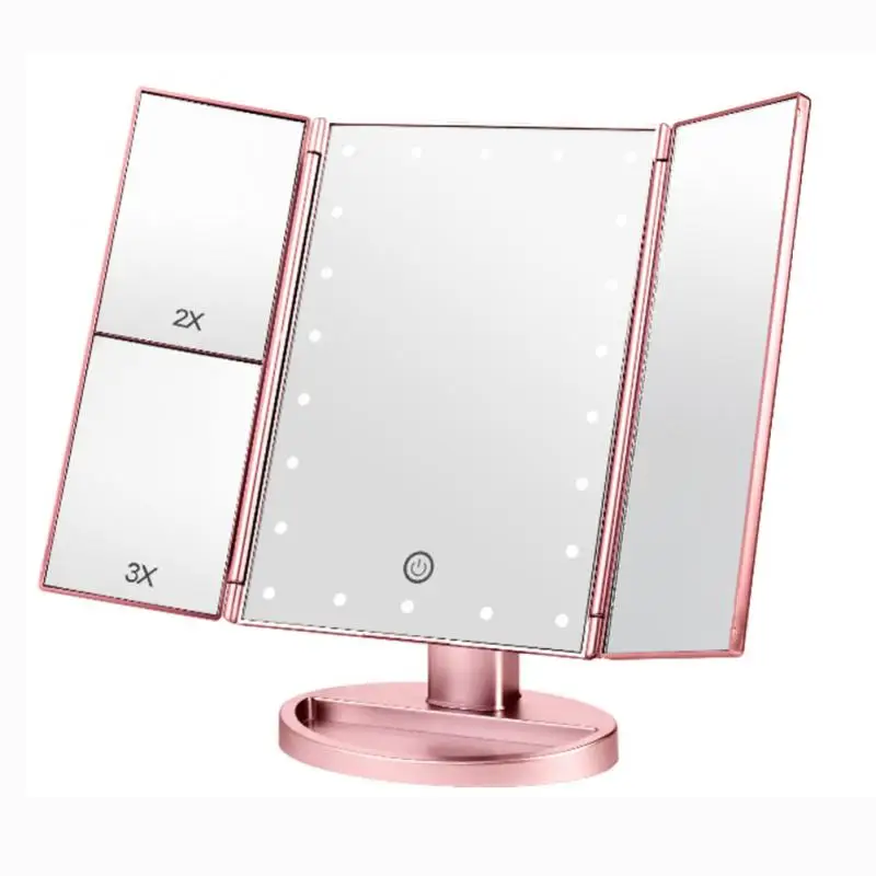 1X,2X,3X режимы увеличения; Освещенное зеркало для макияжа имеет 3 панели увеличительного и широкоугольного обзора; Четко видеть ваше лицо и сделать Безупречный макияж, подходит для настольного макияжа и ручного использования