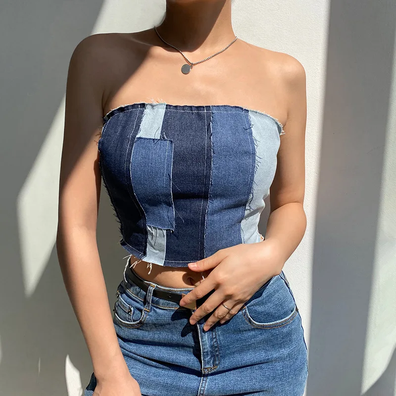 Топ женский джинсовый без рукавов, пикантный бандажный топ-бандо на...