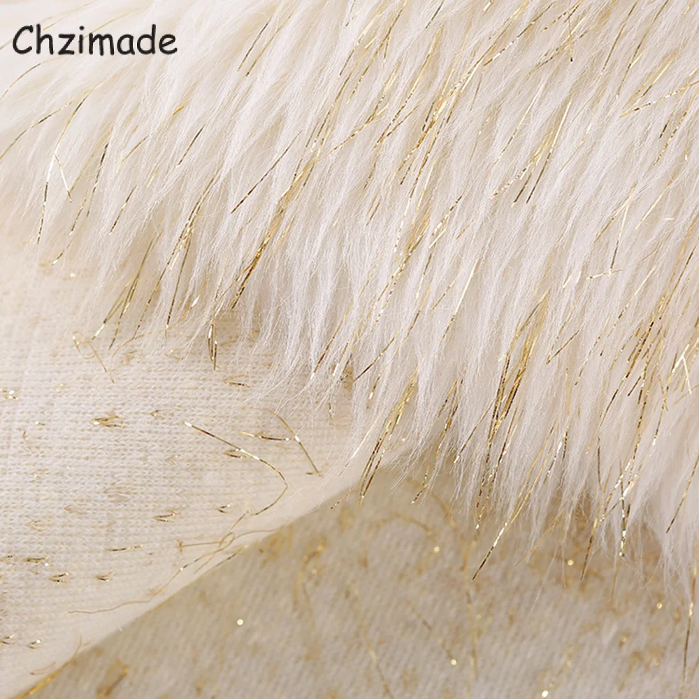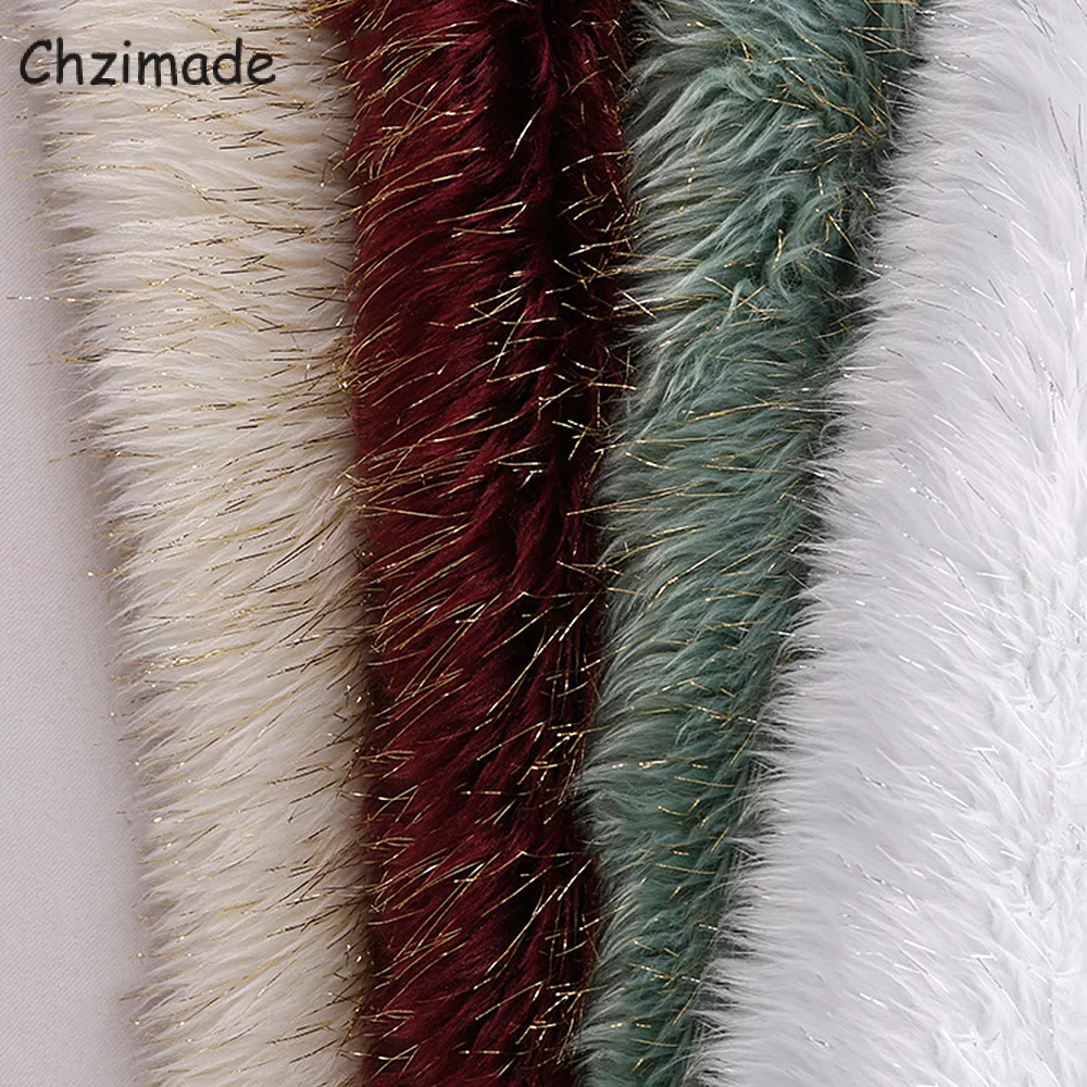 Chzimade шелковая плюшевая ткань из искусственного меха Серебряного и золотого цвета для одежды, игрушек, искусственный мех, длинные волосы, ткань для рукоделия