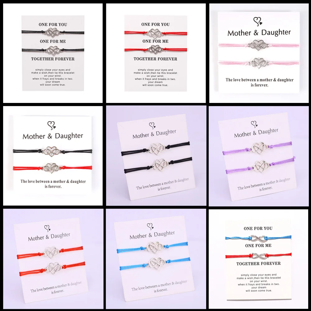 (Набор) браслеты для мамы, мать, сердце, дочь, бесконечность, Регулируемая Веревка, модные ювелирные изделия, подарок для женщин и девочек, Прямая поставка